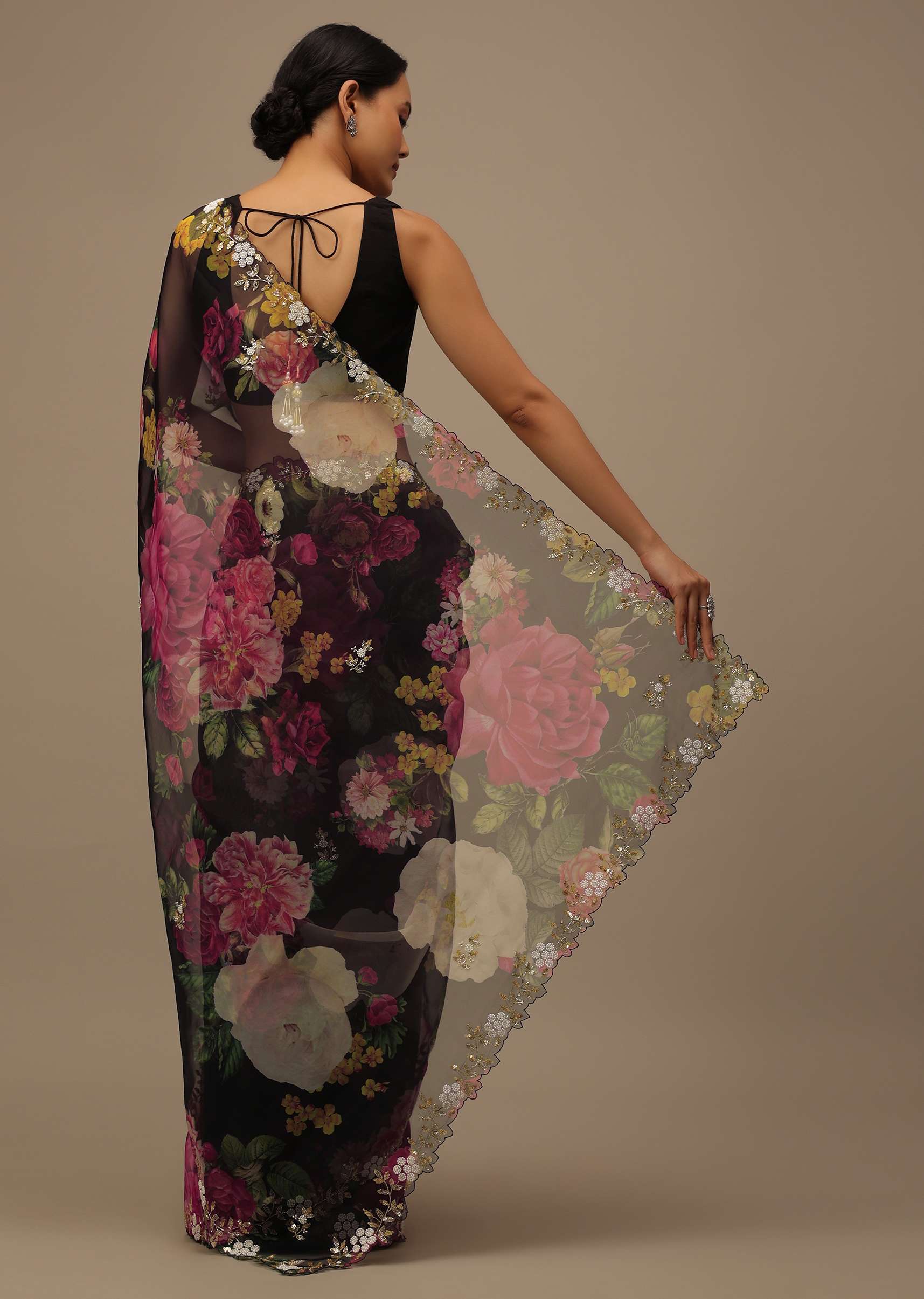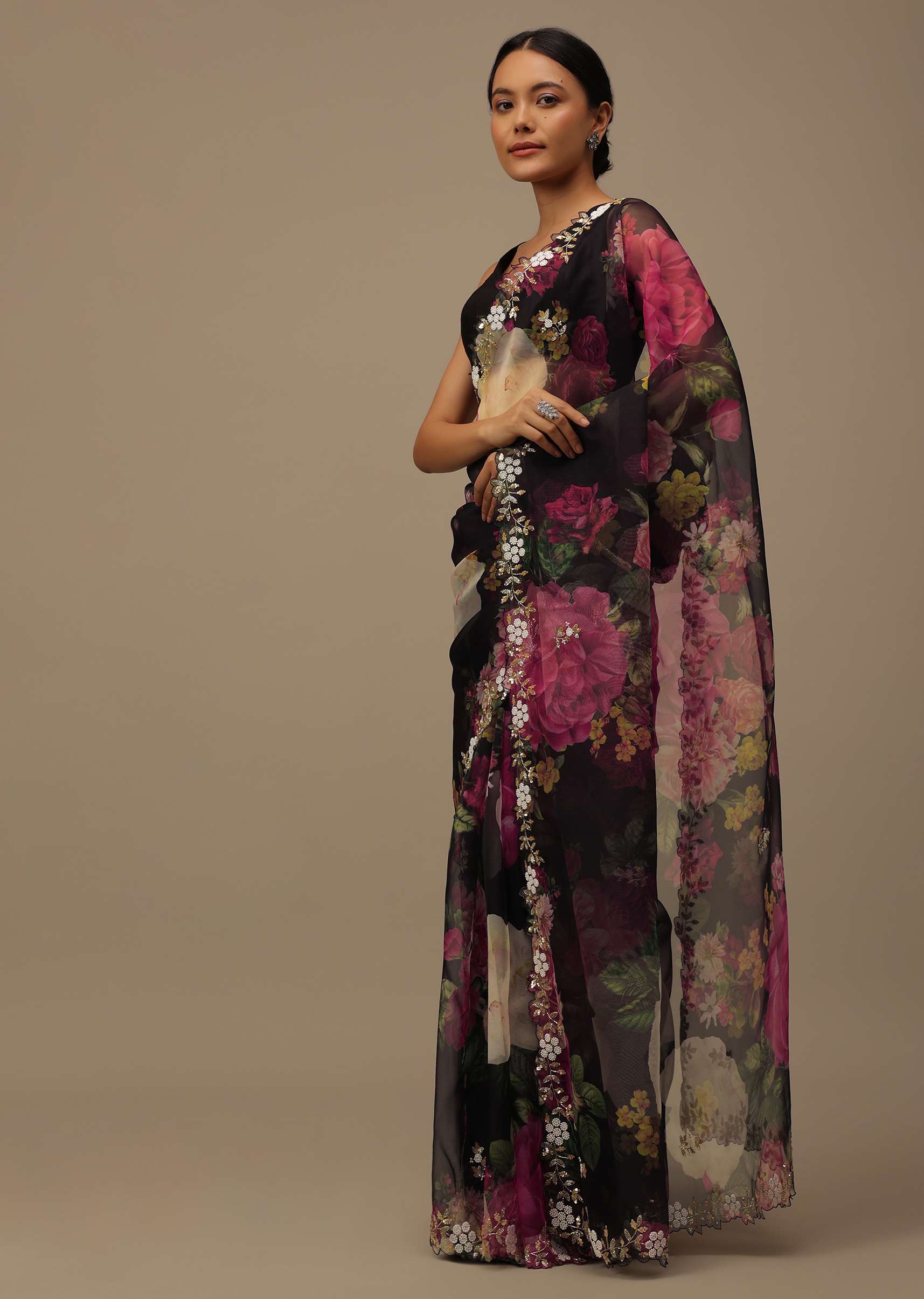 Indulge in the elegance and grace of our stunning organza saree adorned with a lively floral print. The saree exudes sophistication with its scallop border embellished with intricate cutdana work. The saree is further enhanced by delicate cutdana butti work spread throughout the saree. EVENT - Ideal for festive celebrations and gatherings.The saree comes with an unstitched blouse fabric.NOTE - The blouse worn by the model is for styling purpose only. Awarded as the Most Trusted Brand, we're delivering styles you love, just as promised.