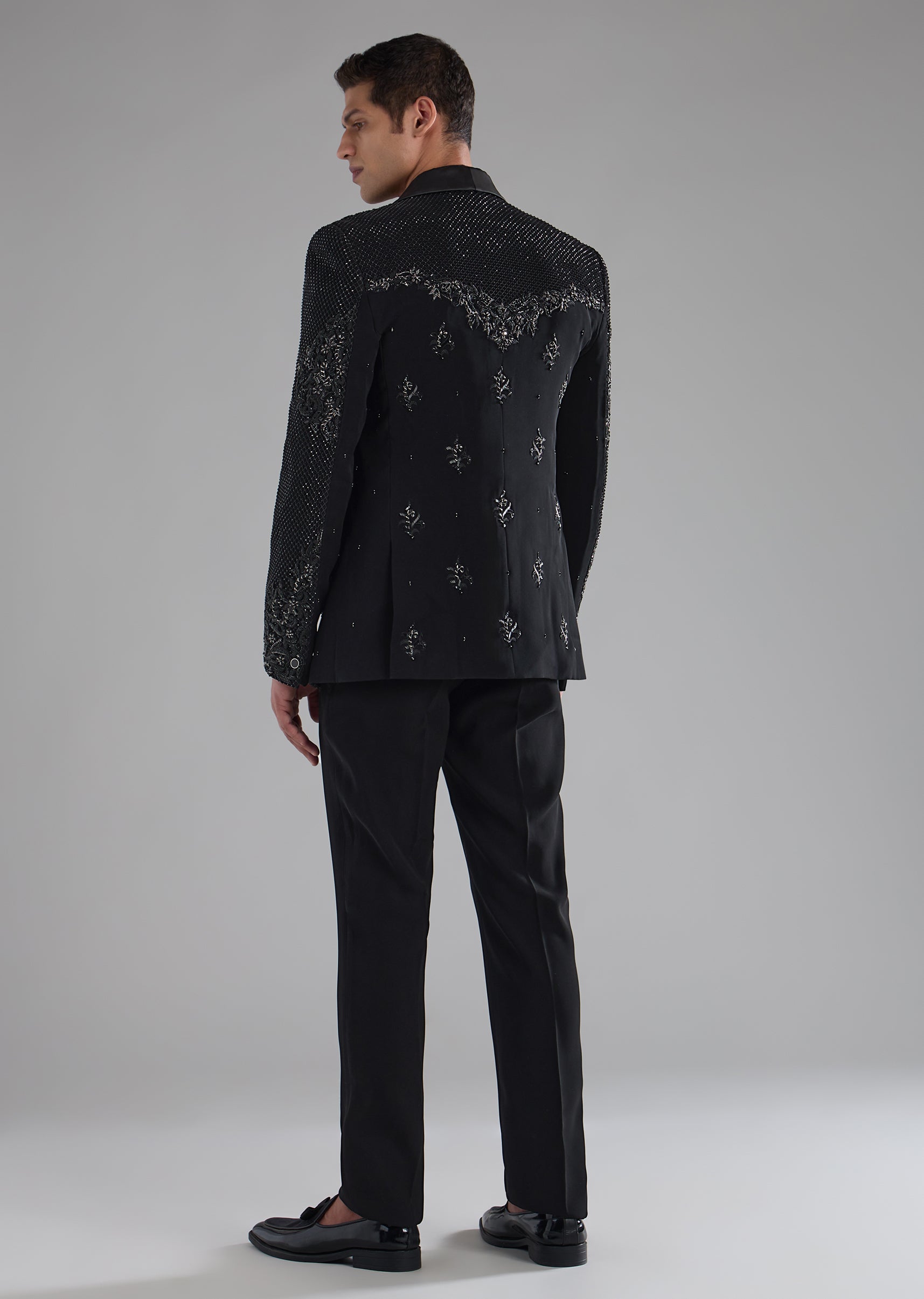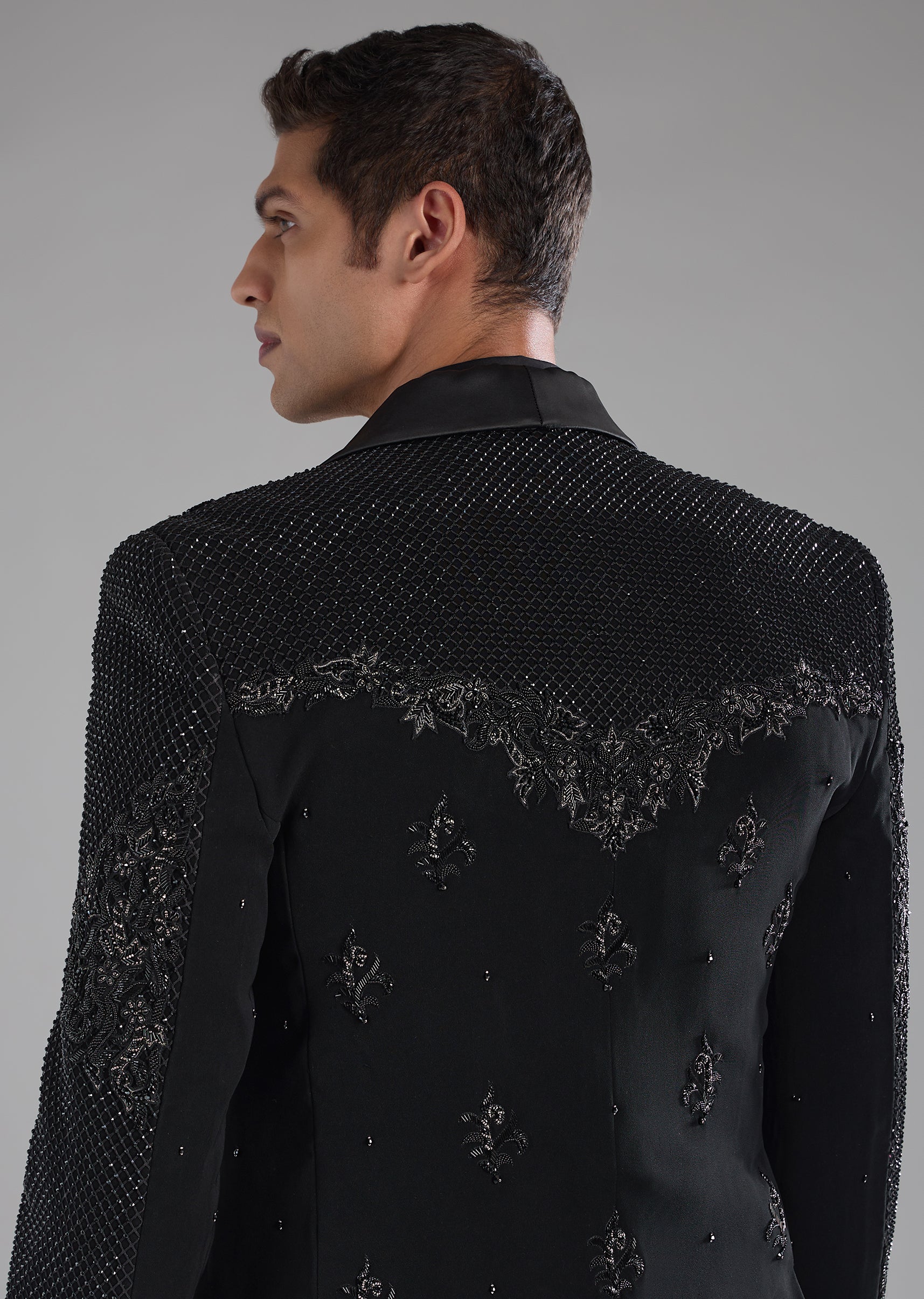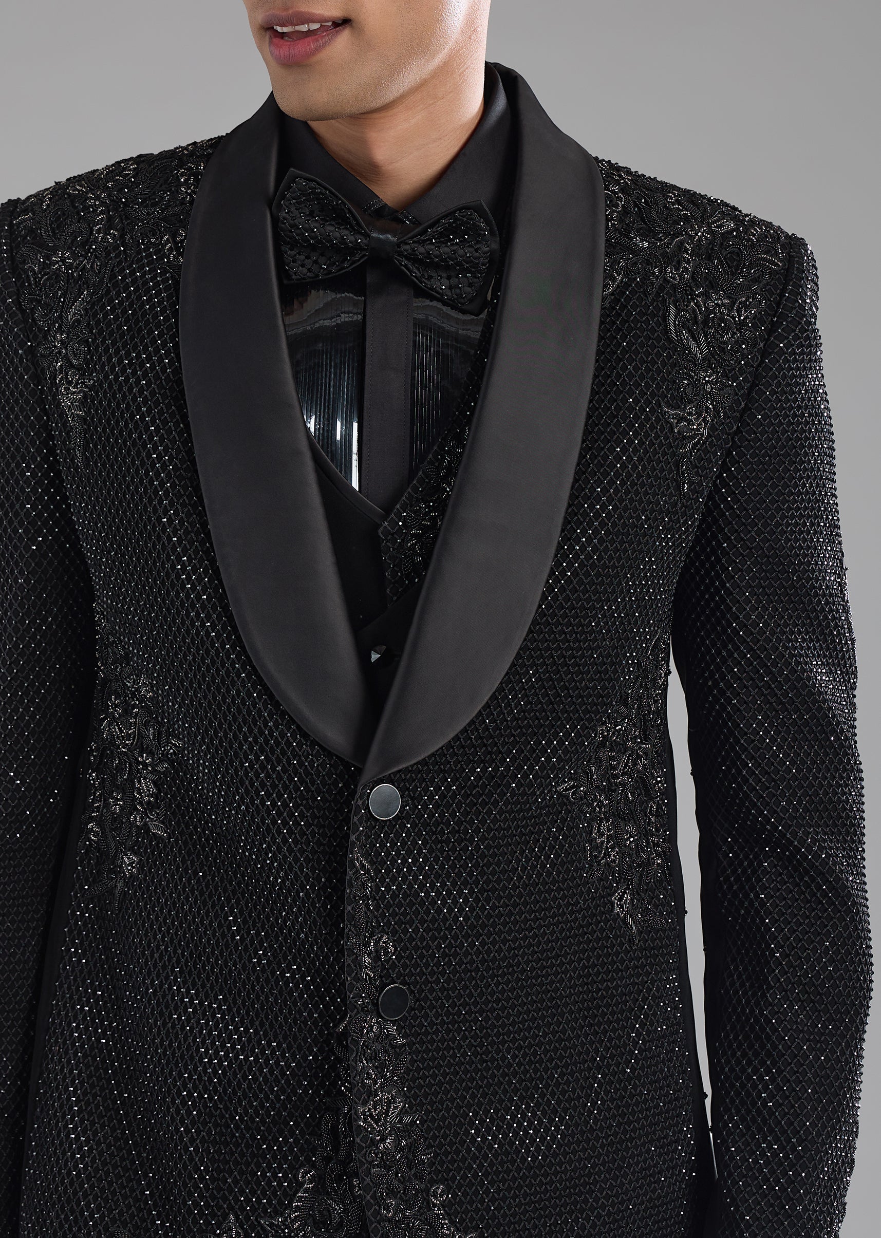 Designed to make a refined statement, this polyester tuxedo set brings together elegance and festive detailing. The tuxedo is embellished with intricate thread and resham embroidery, highlighted with bead and... More Product Details