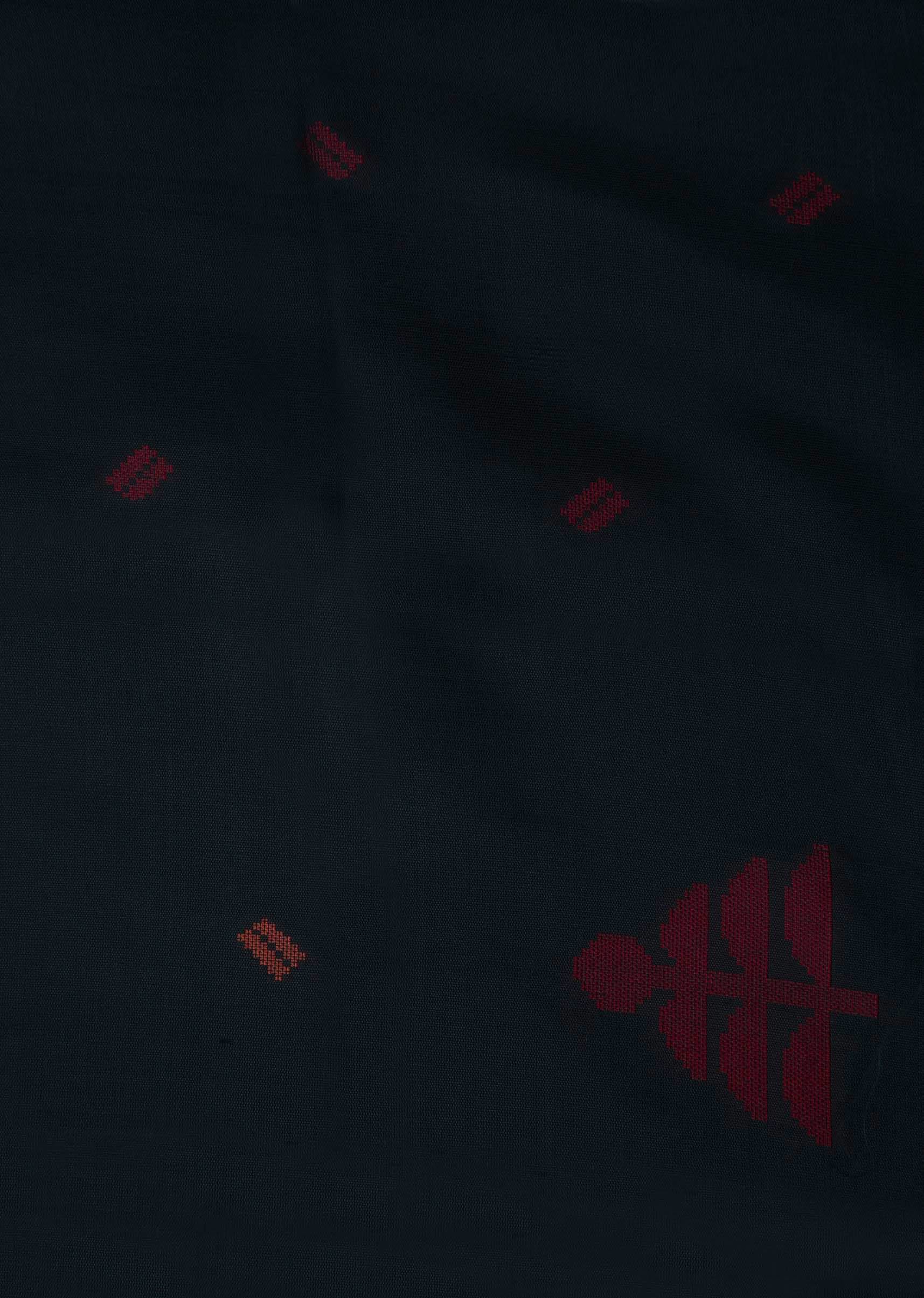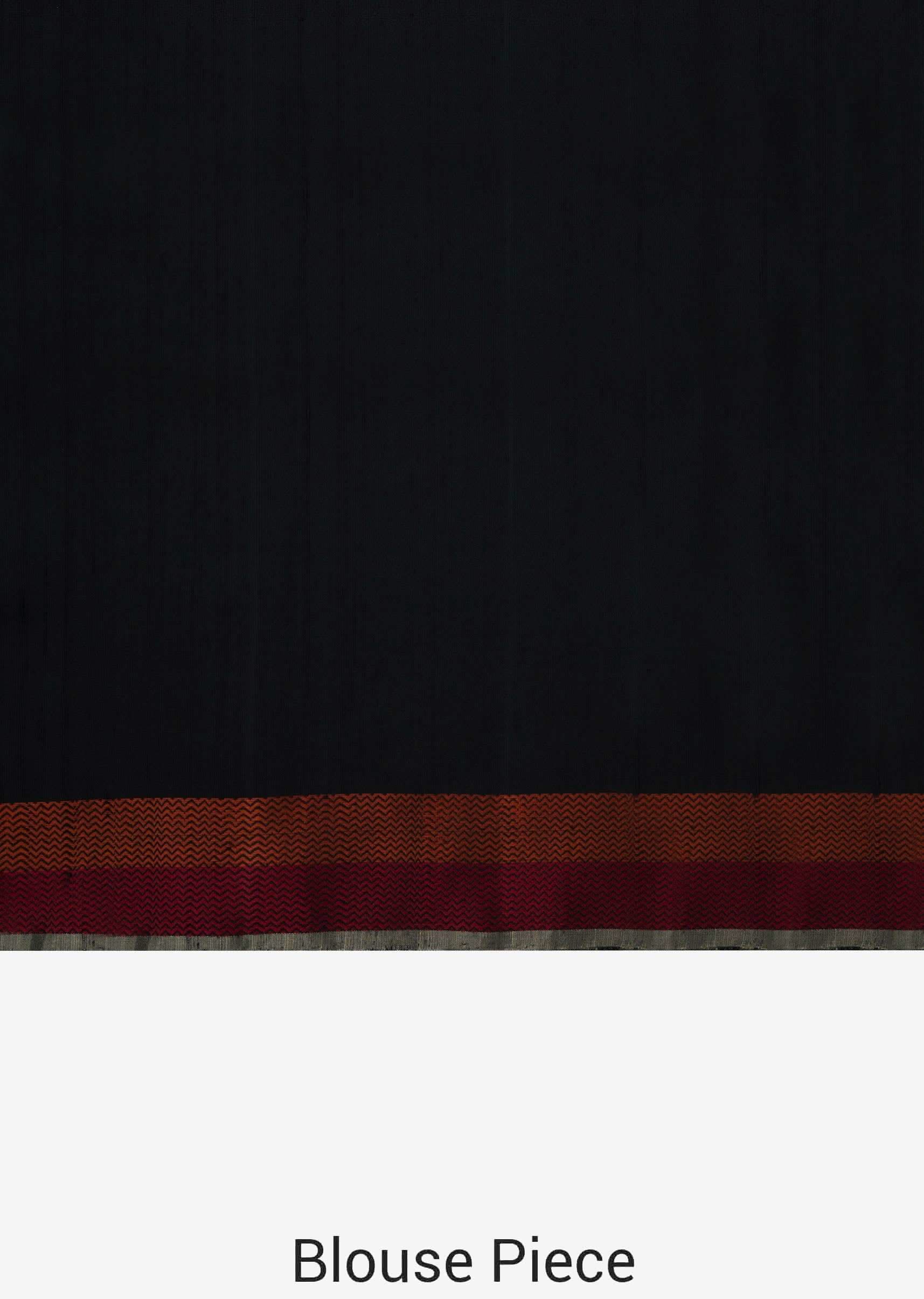 Black saree is featured in silk fabric. The saree is intricately designed using the floral red weaved butti embroidery all over with orange and red borders. It is enhanced in... More Product Details