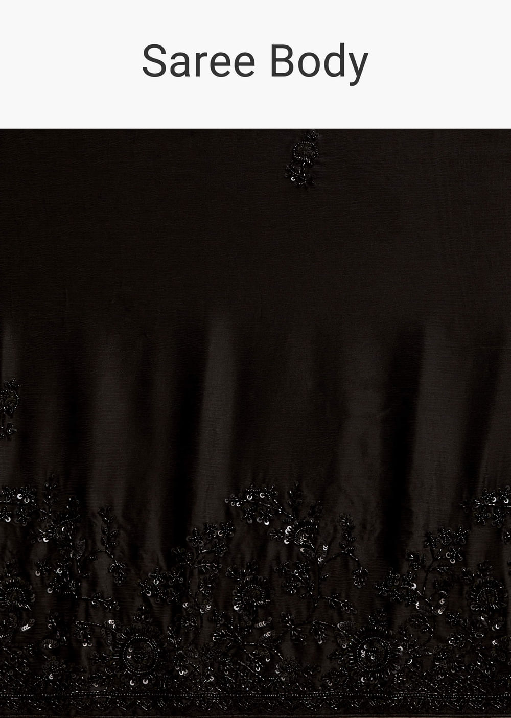 If evening drama is the goal, this black satin chinon saree blends fluid drape with tone-on-tone richness. Heavy black floral embroidery with sequins, cutdana and beads runs all over, complemented... More Product Details