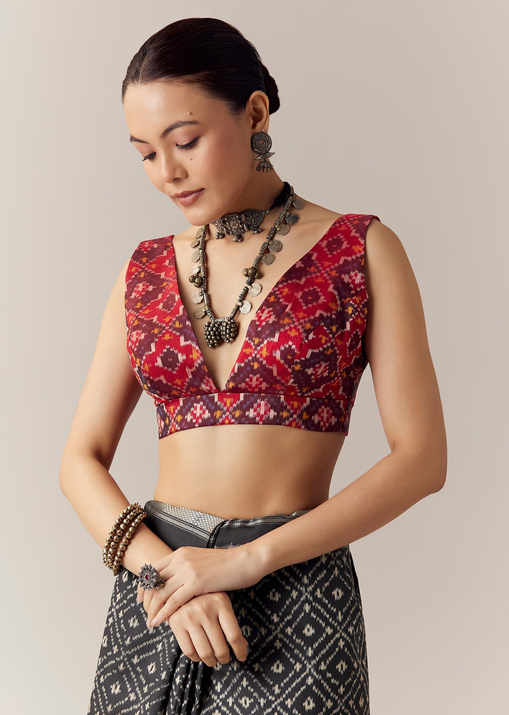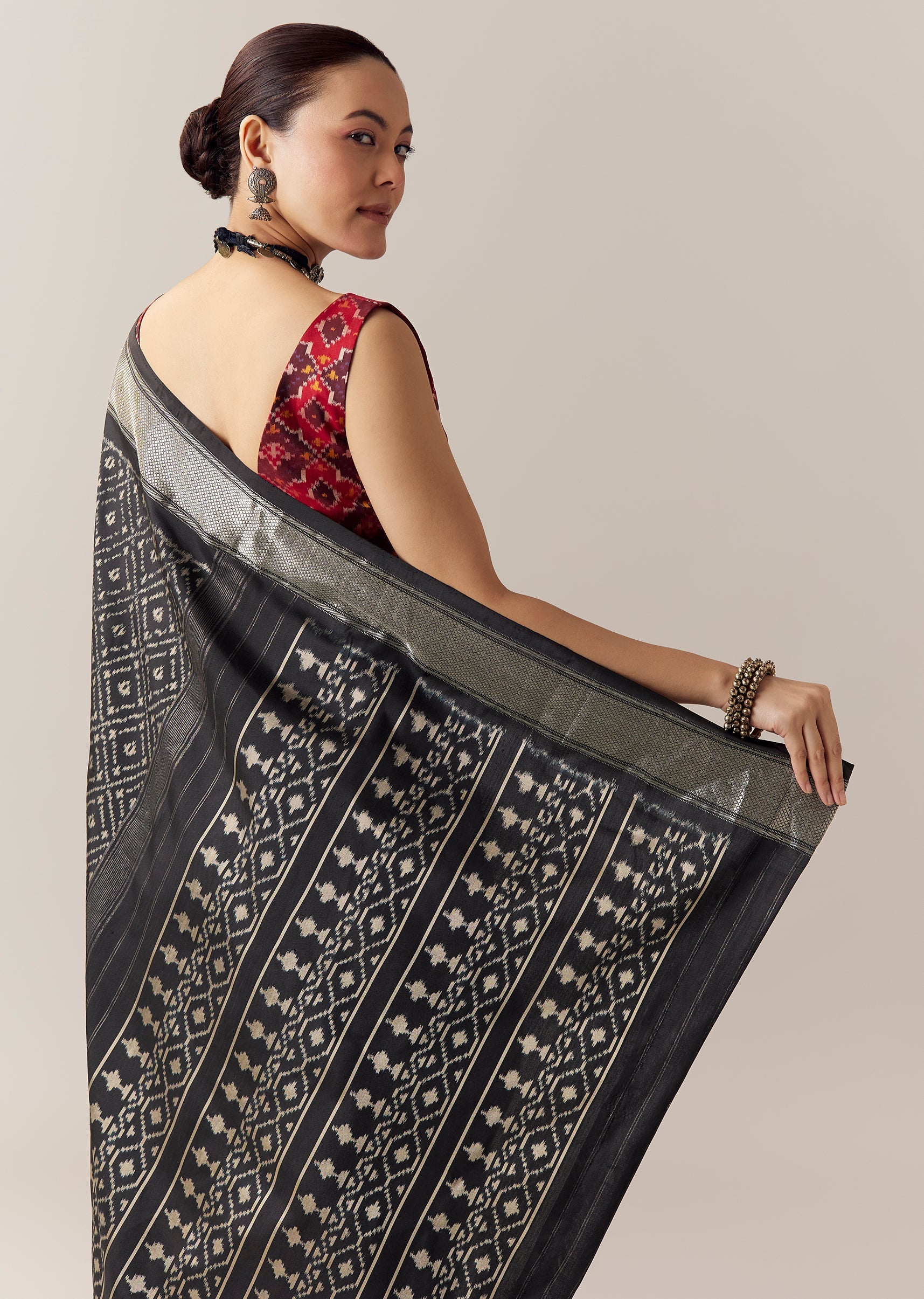 Black Silk Ikkat Weave Saree with Unstitched Blouse