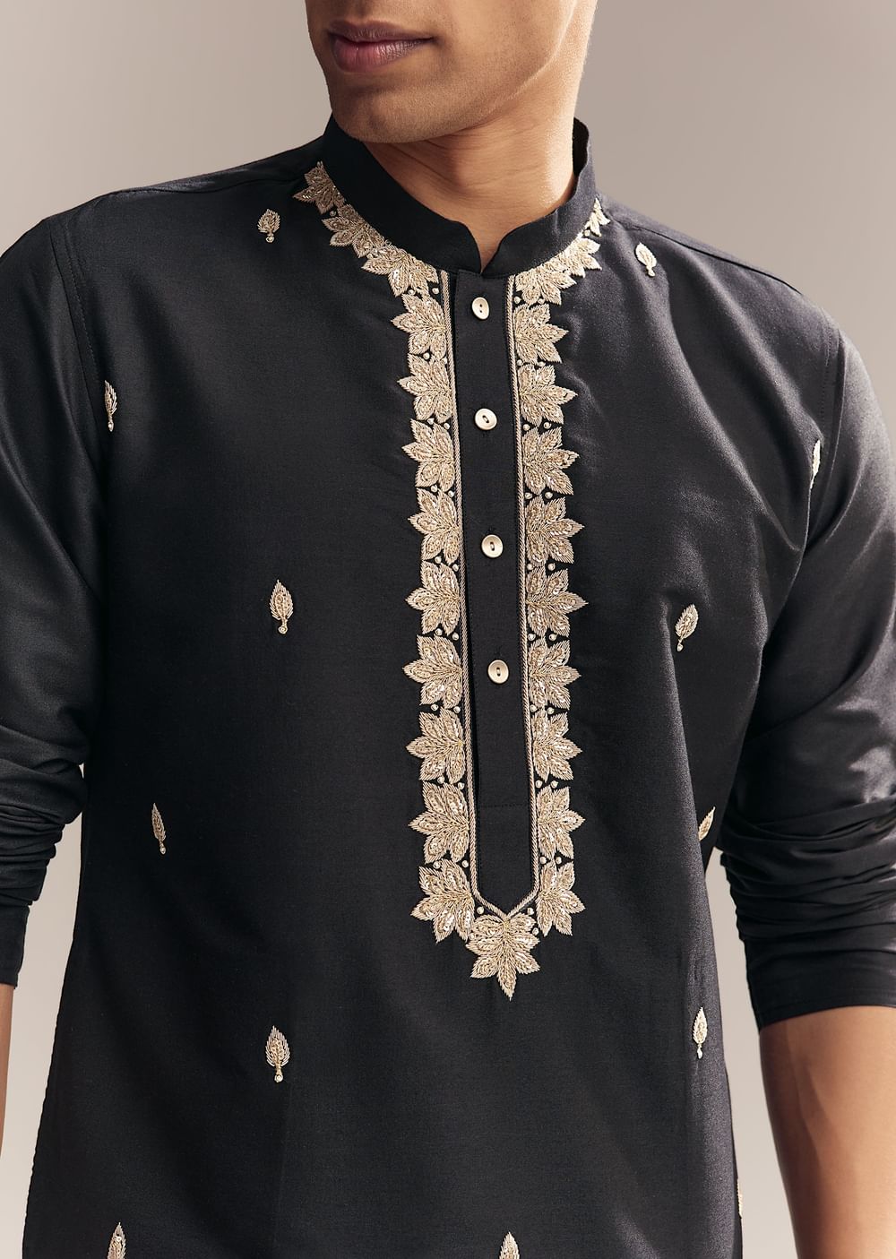 Black Silk Kurta Set For Men With Zardosi And Aari Work
