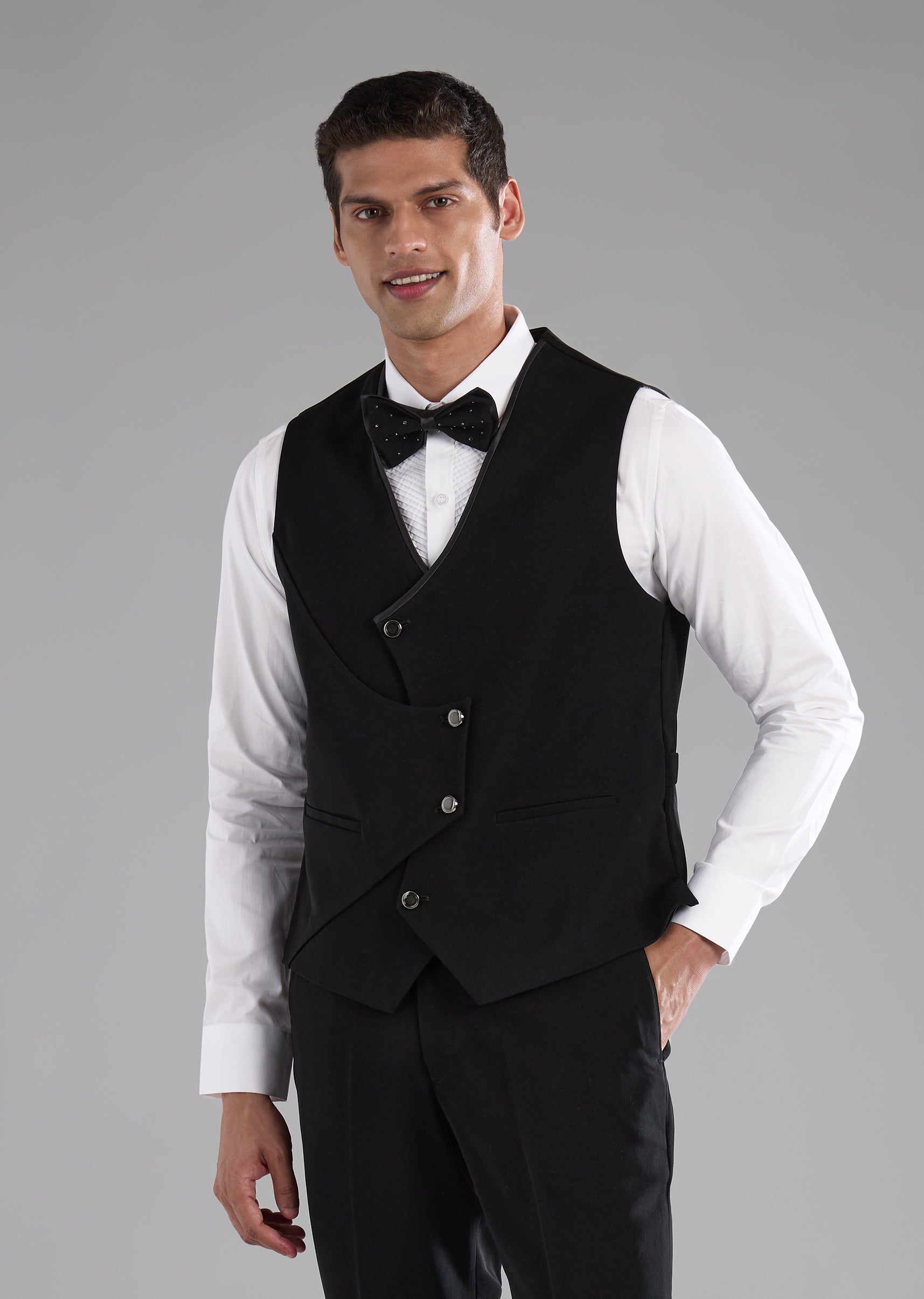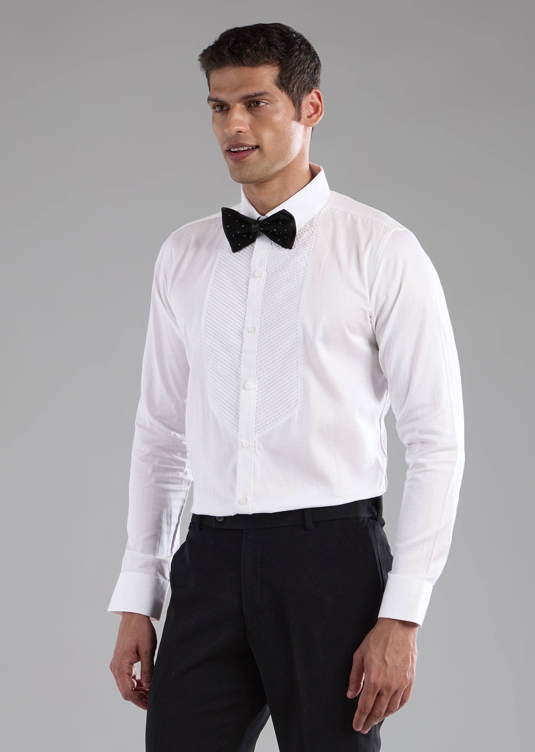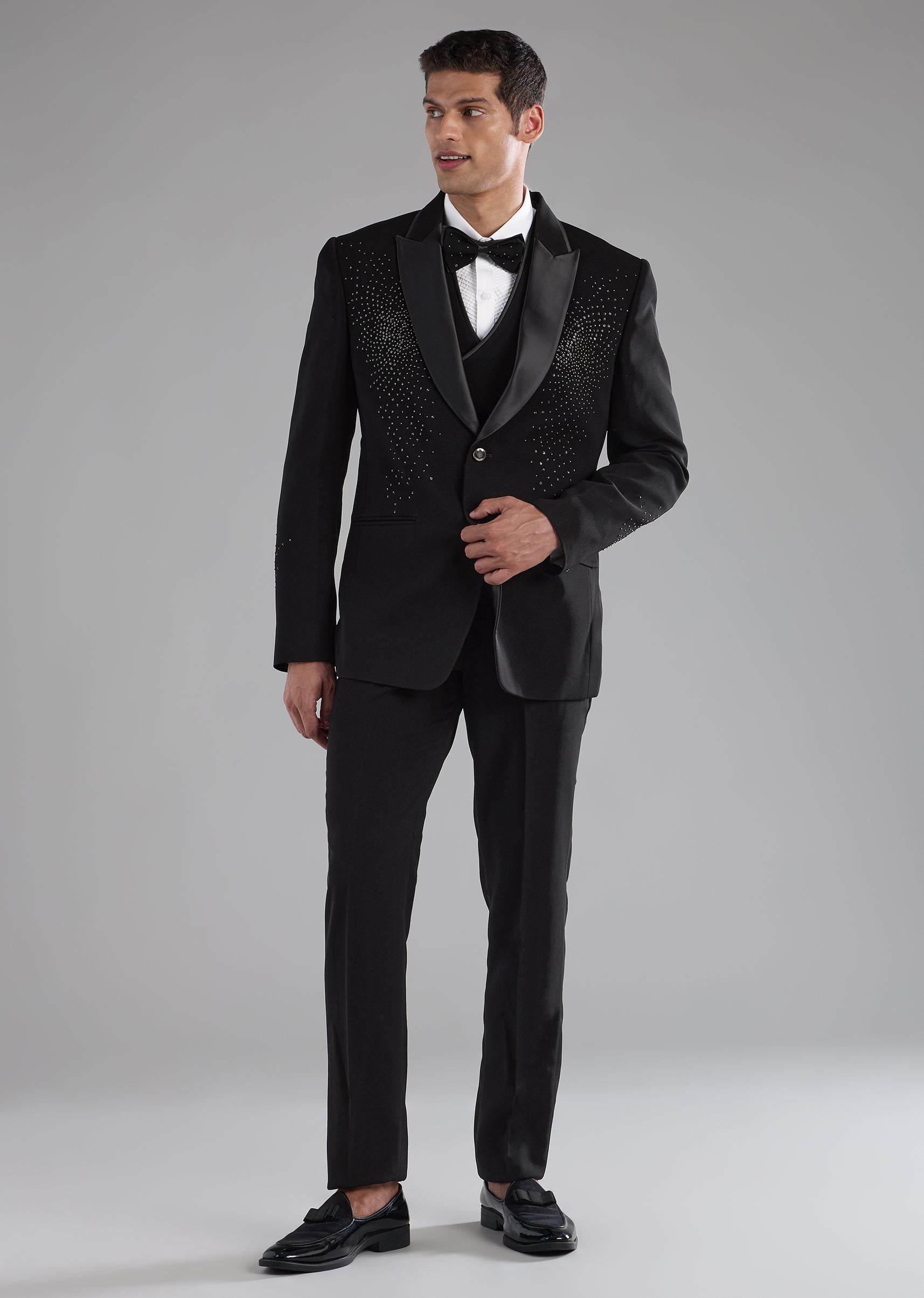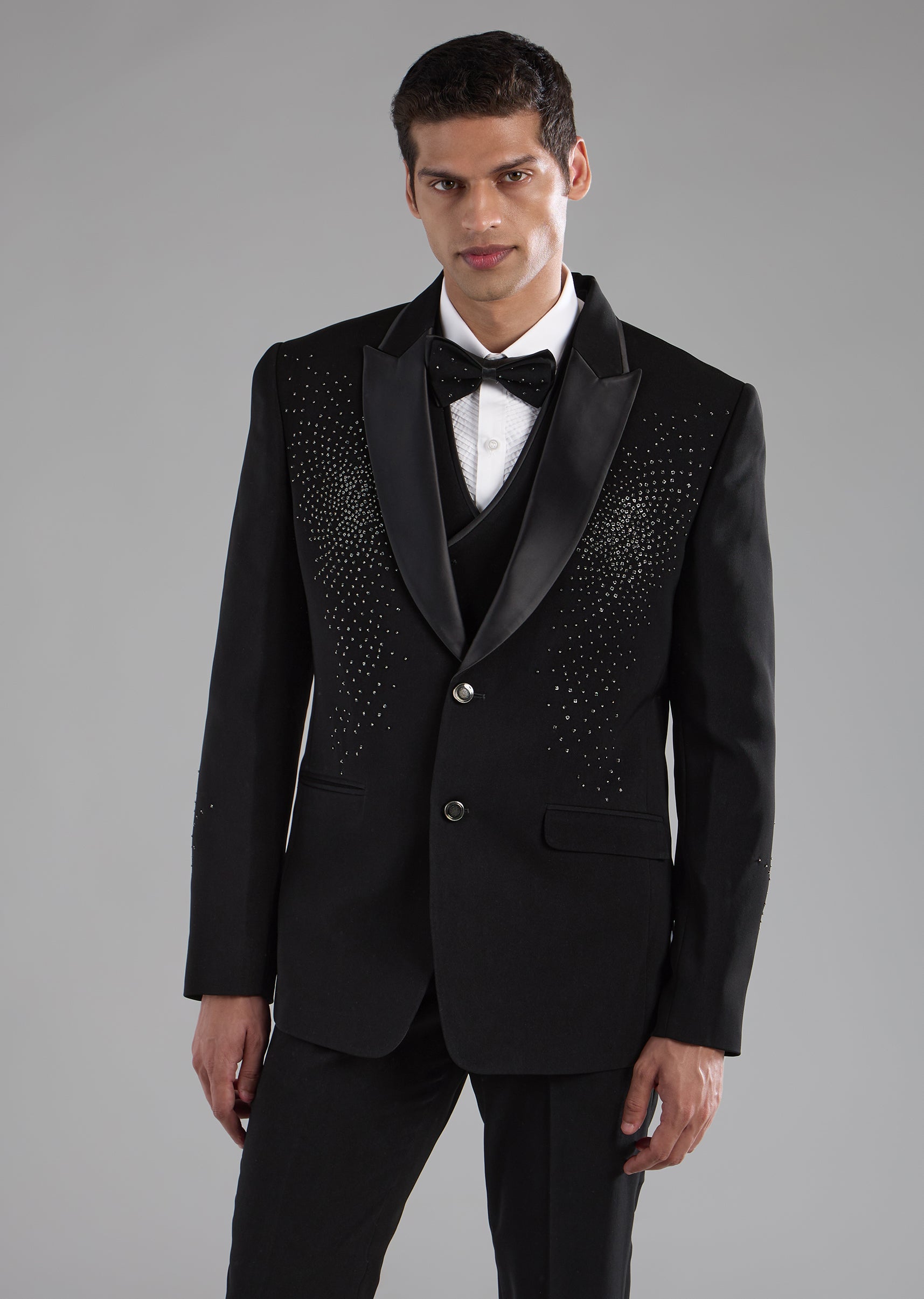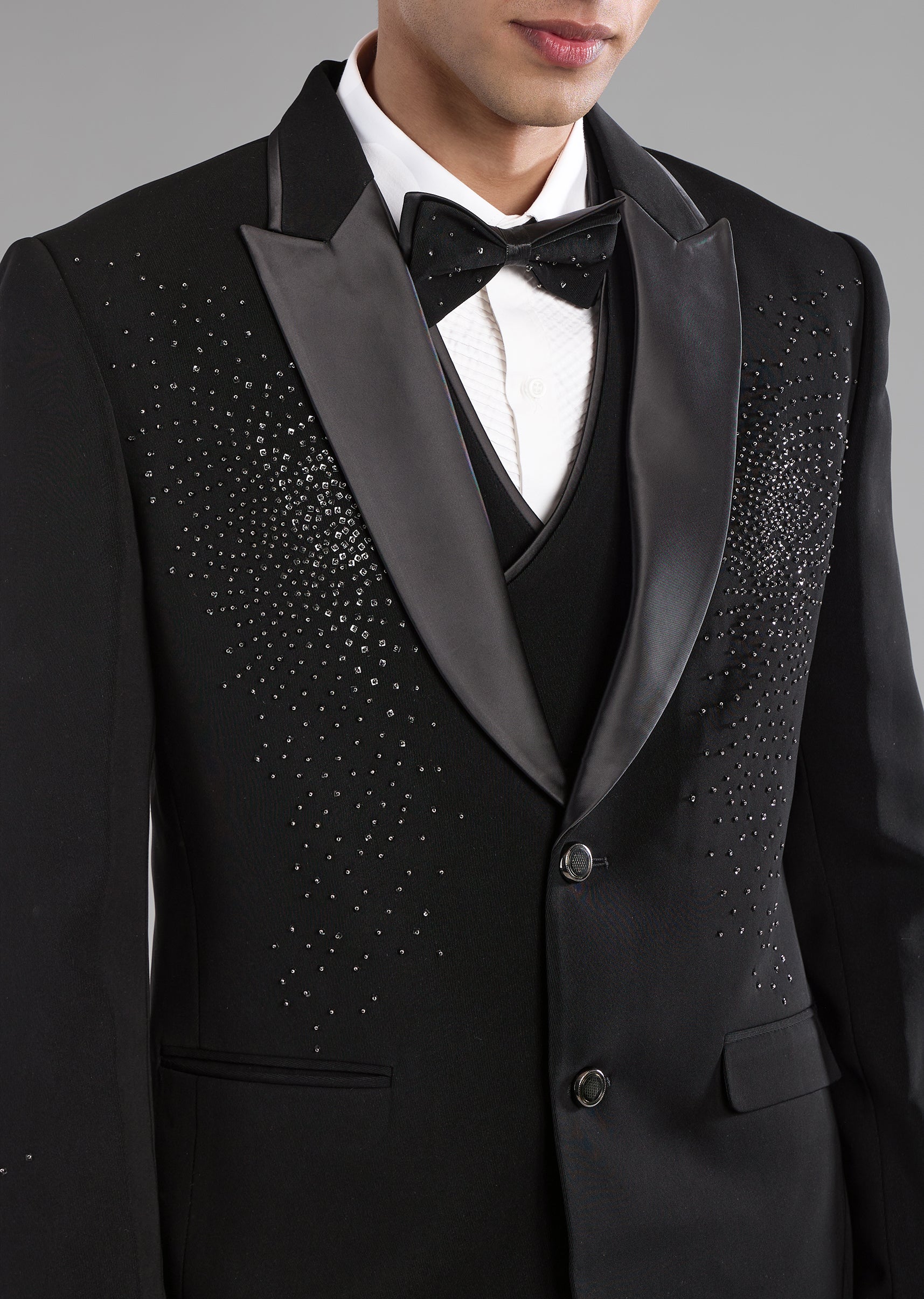 Black Stone Work Tuxedo, Shirt and Bow Set
