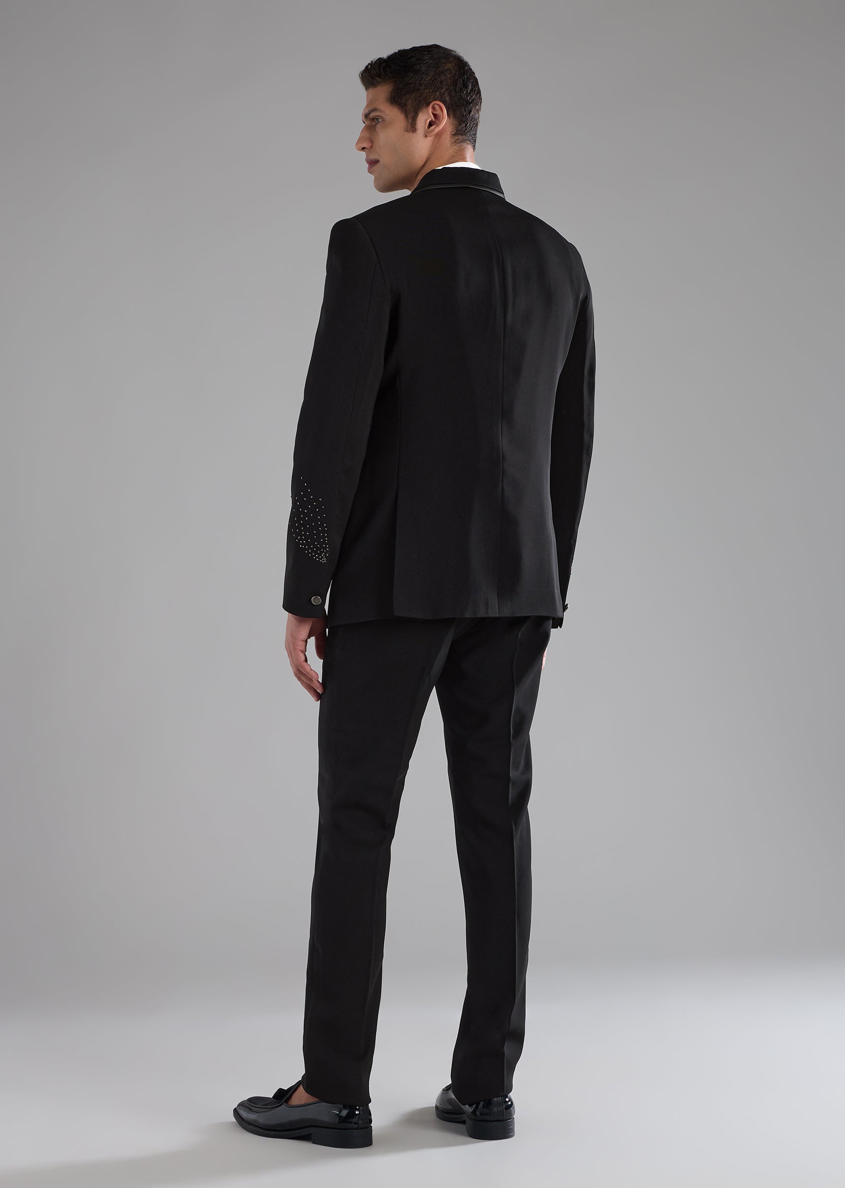 Crafted for evenings that call for refined drama, this polyester tuxedo set delivers a confident and elevated look. Thoughtfully placed stone work lends a soft, luxurious shine, enhancing the clean... More Product Details