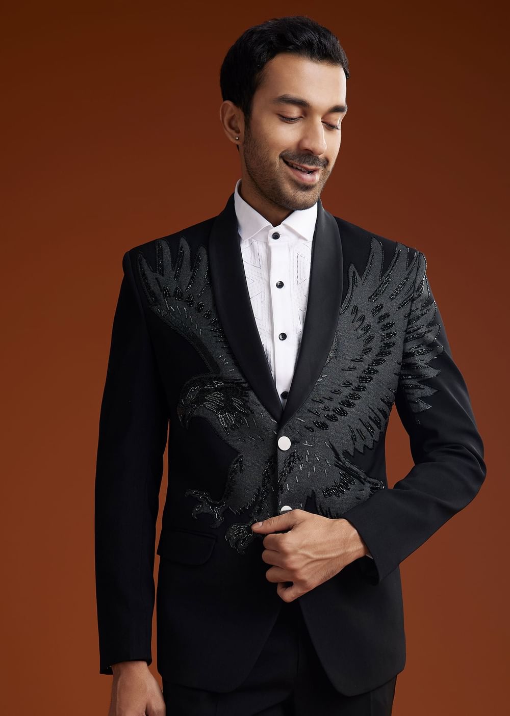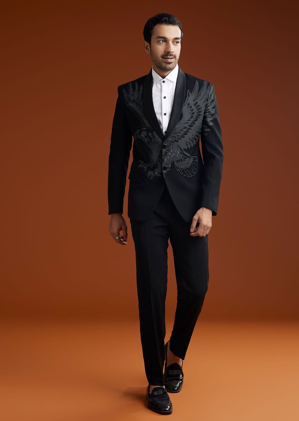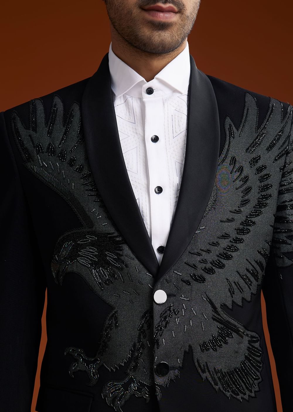 Step into sophistication with this black suiting coat set featuring intricate cut dana embroidery. Designed with a shirt collar full sleeves and front button closure this ensemble is a refined choice for formal occasions.Awarded as the Most Trusted Brand we're delivering styles you love just as promised.