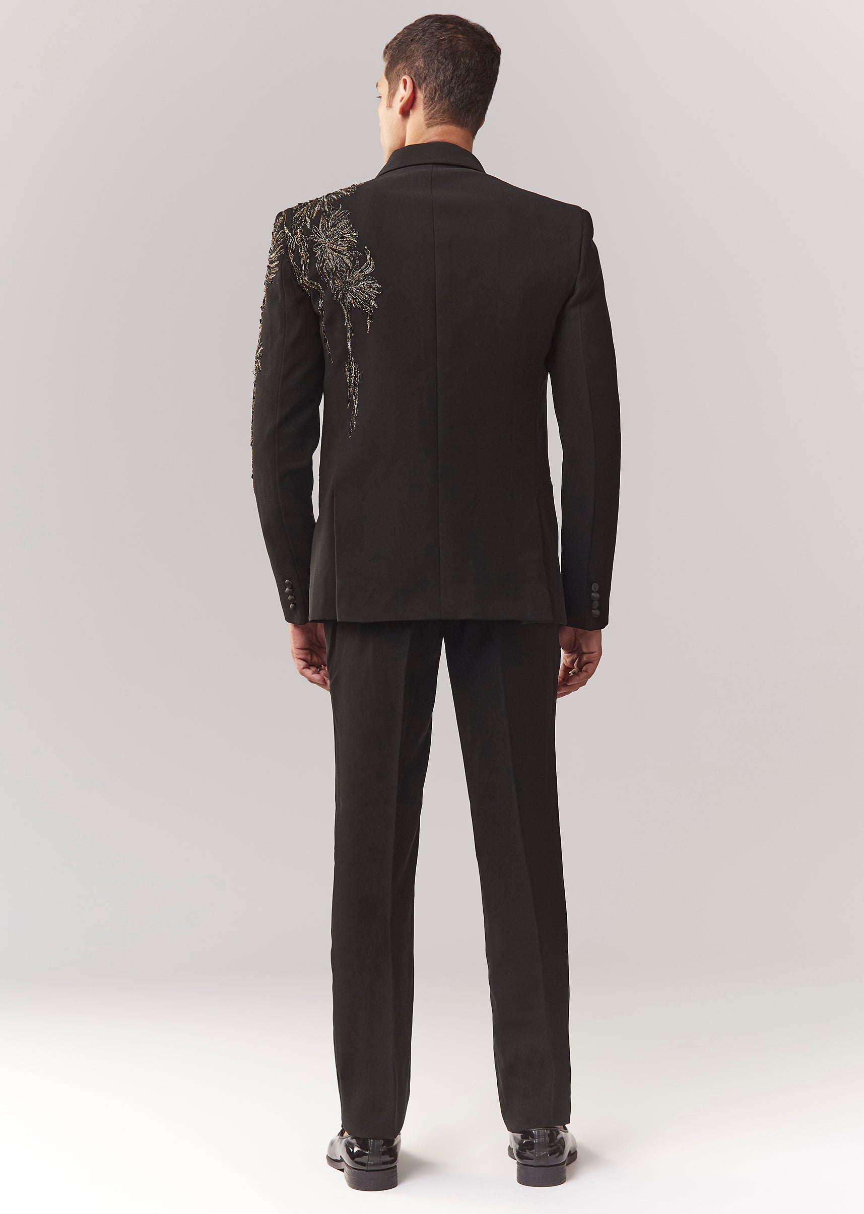 Black Tuxedo Set With Dori Work Cutdana And Stone