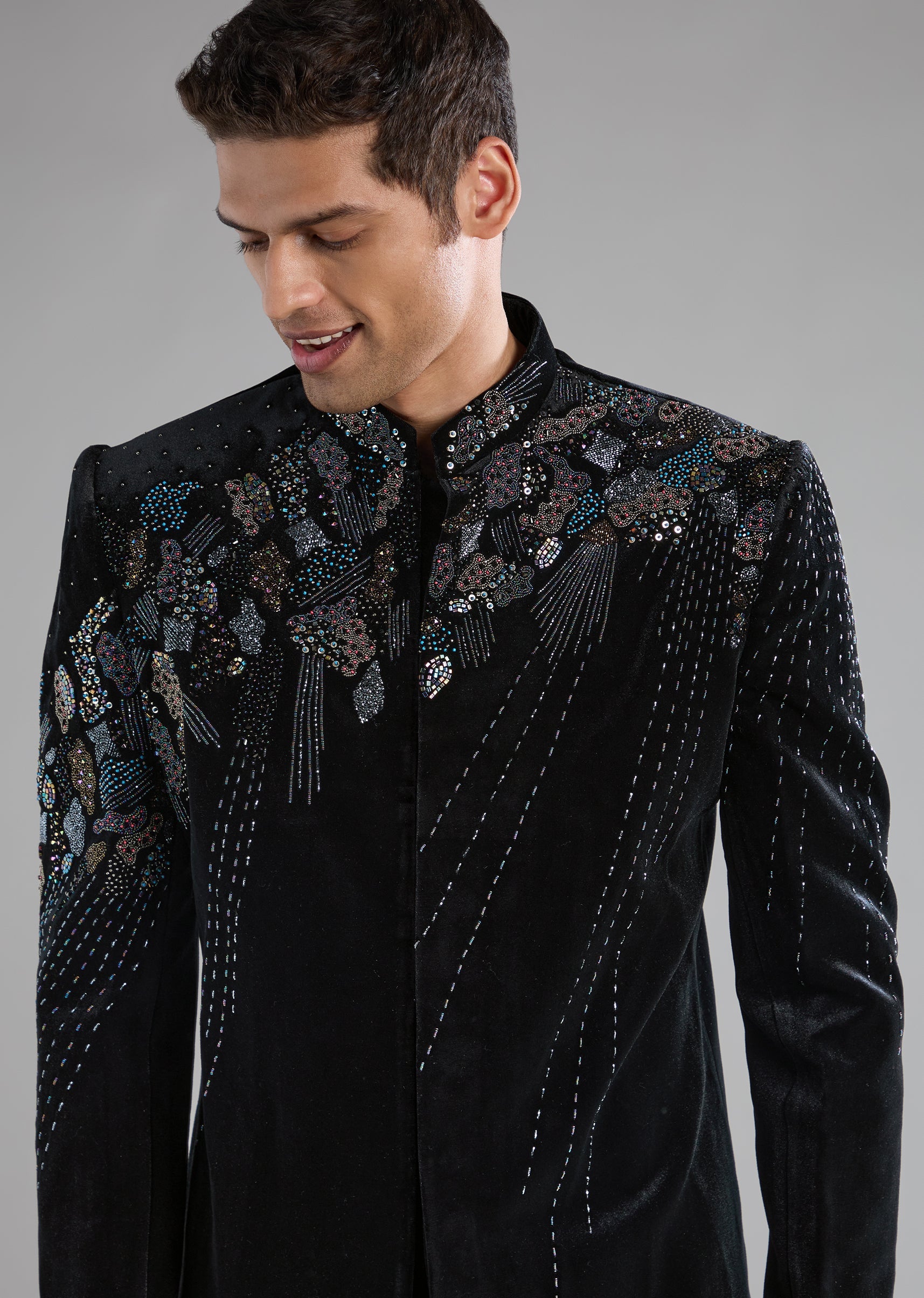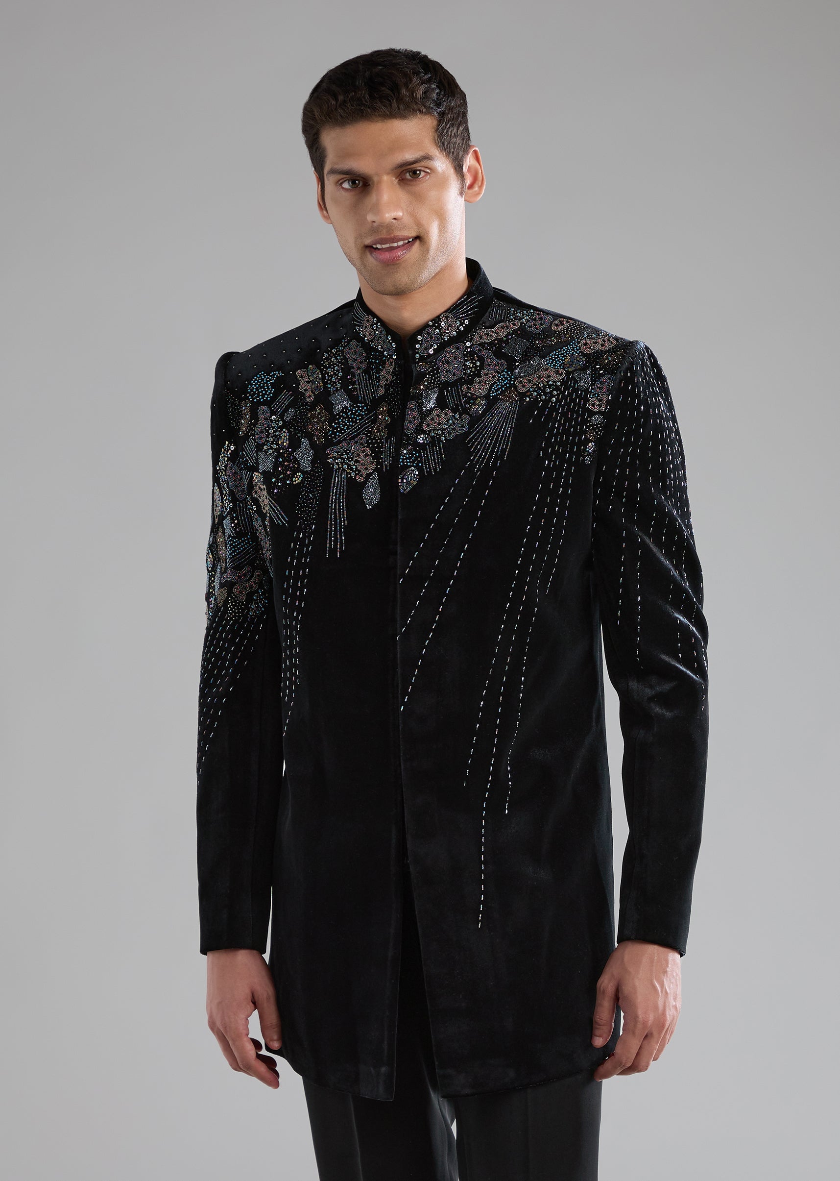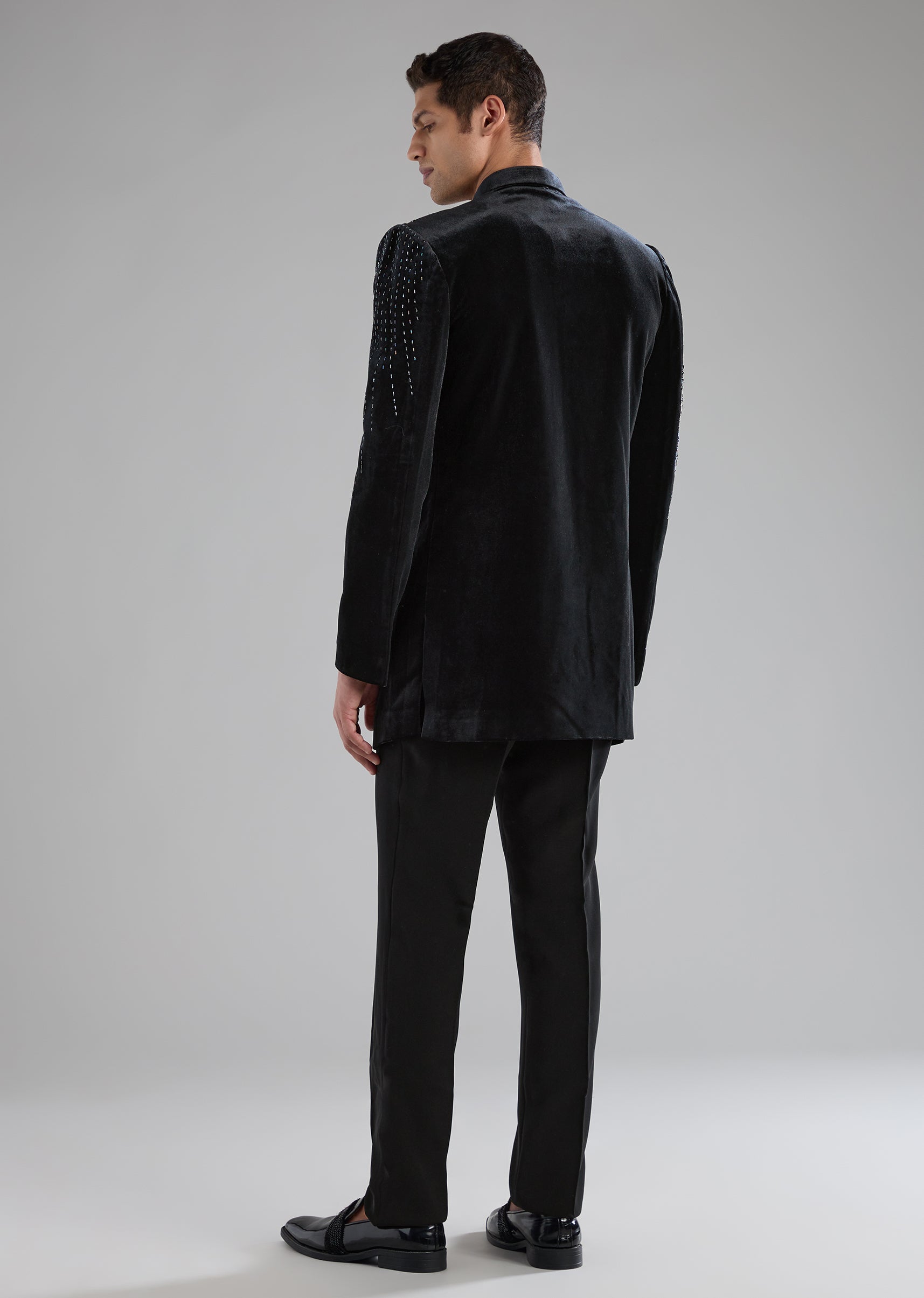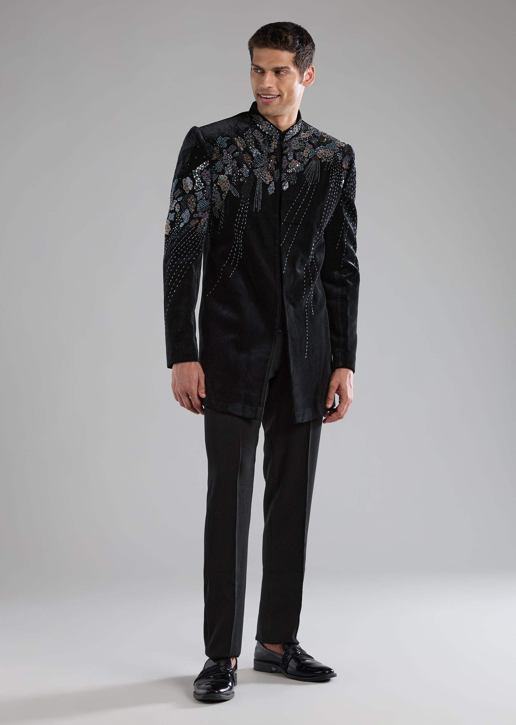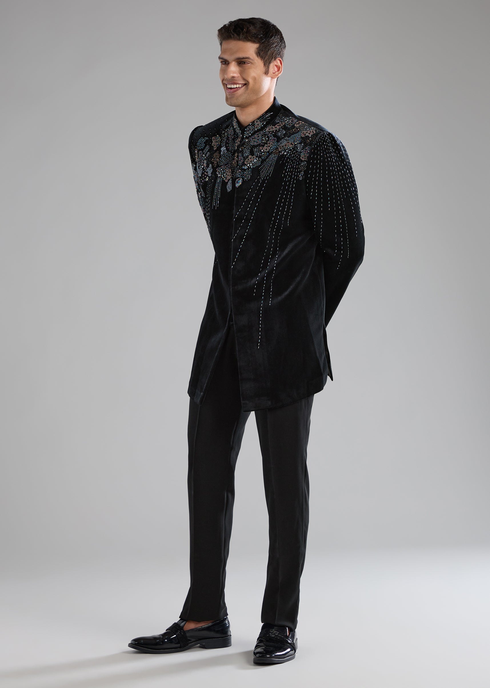 Black Velvet Indowestern Pant Set with Zardozi Work