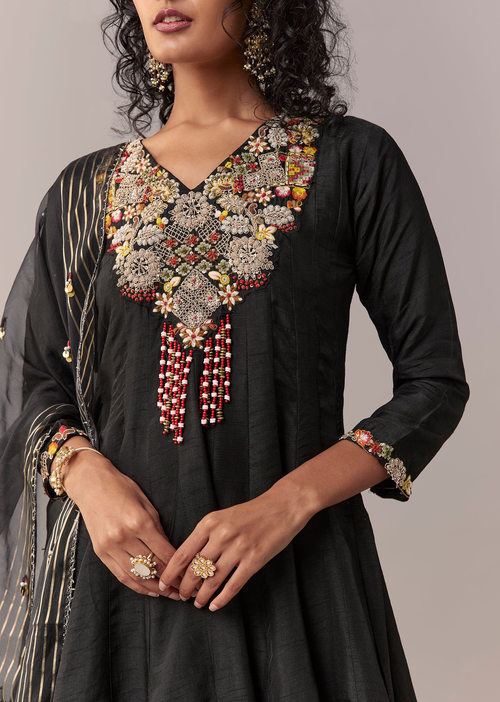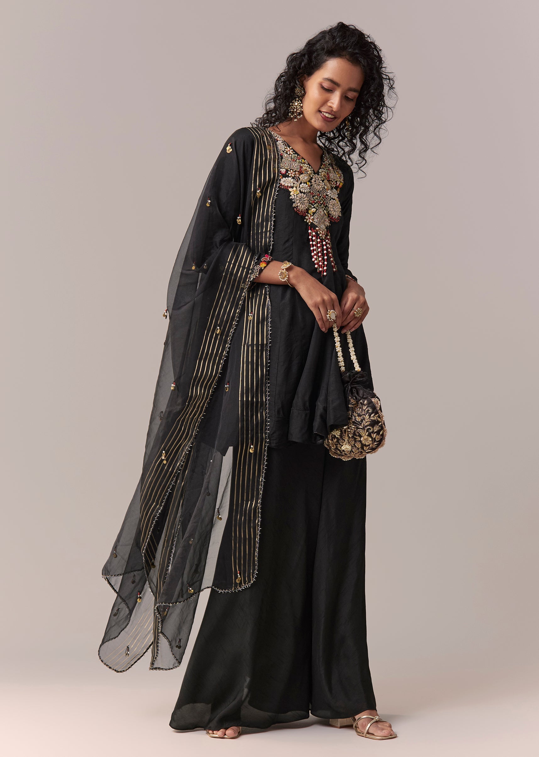 Black Zardosi & Thread Palazzo Set With Dupatta