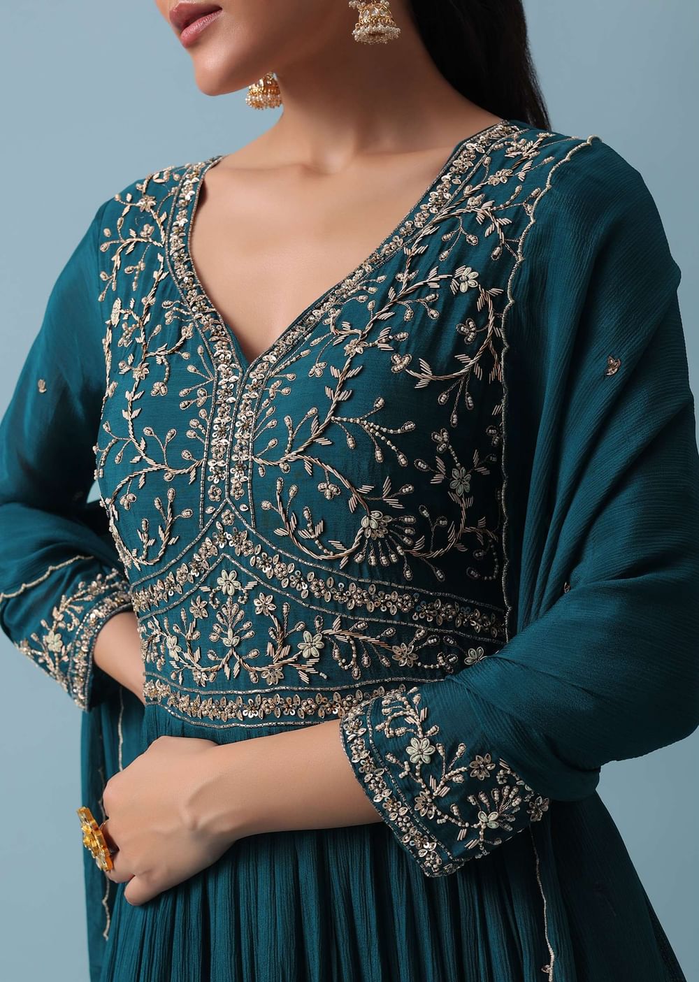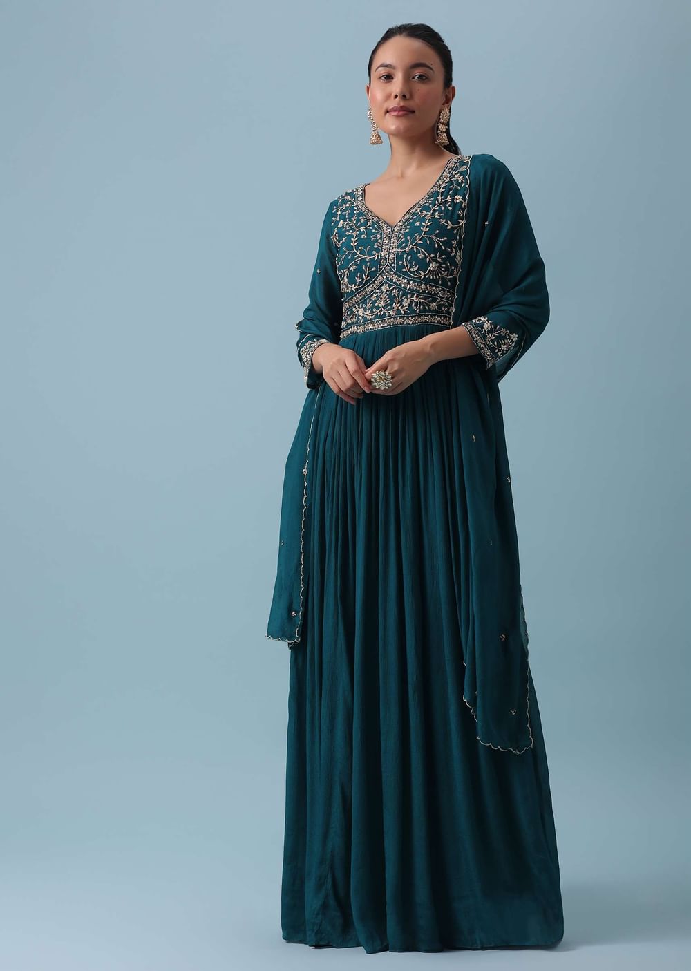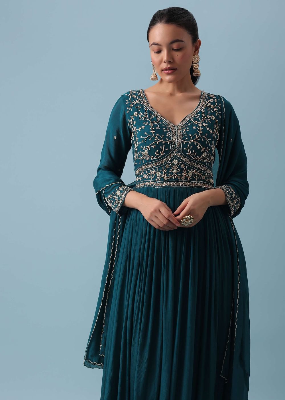 Blue Anarkali Set With Zardozi Work