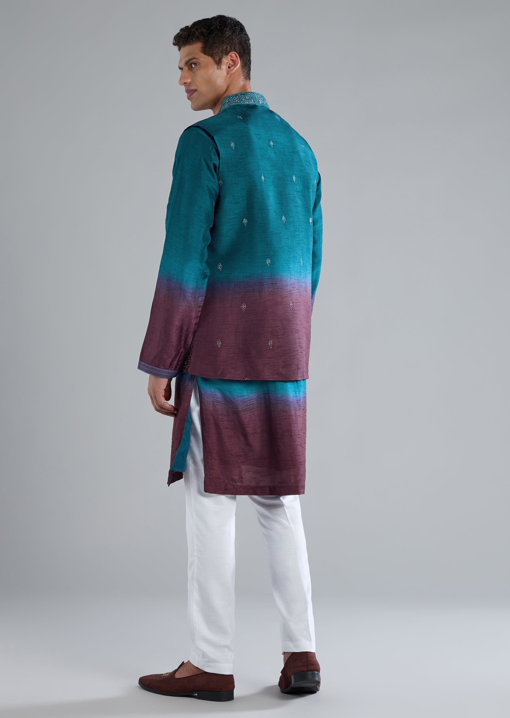 Blue And Purple Kurta Jacket Set With Zari And Mirror Work