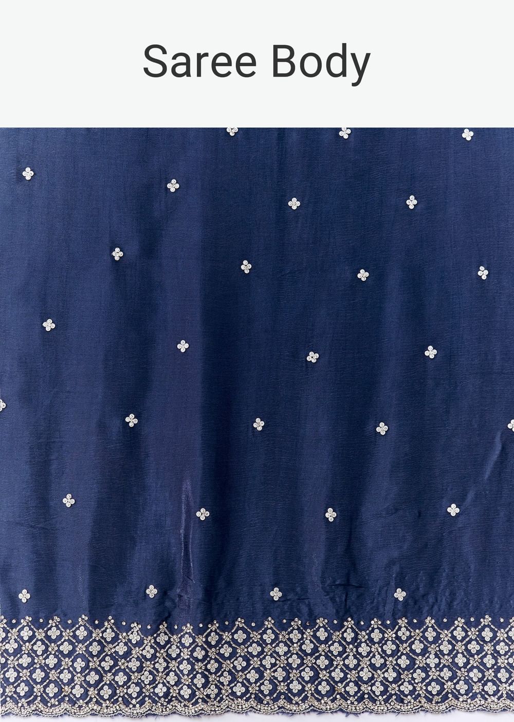 Elevate your festive look with this dual-shaded blue satin saree, featuring a beautifully scalloped border and heavy embroidery adorned with cutdana, sequins, and stones all over. The rich satin fabric offers a smooth, lustrous drape, perfectly complemented by the intricate embellishments that add a touch of luxury and elegance. Ideal for weddings, receptions, or evening occasions, this saree is a stunning blend of modern glamour and timeless grace. Awarded as the Most Trusted Brand, we're delivering styles you love, just as promised.
