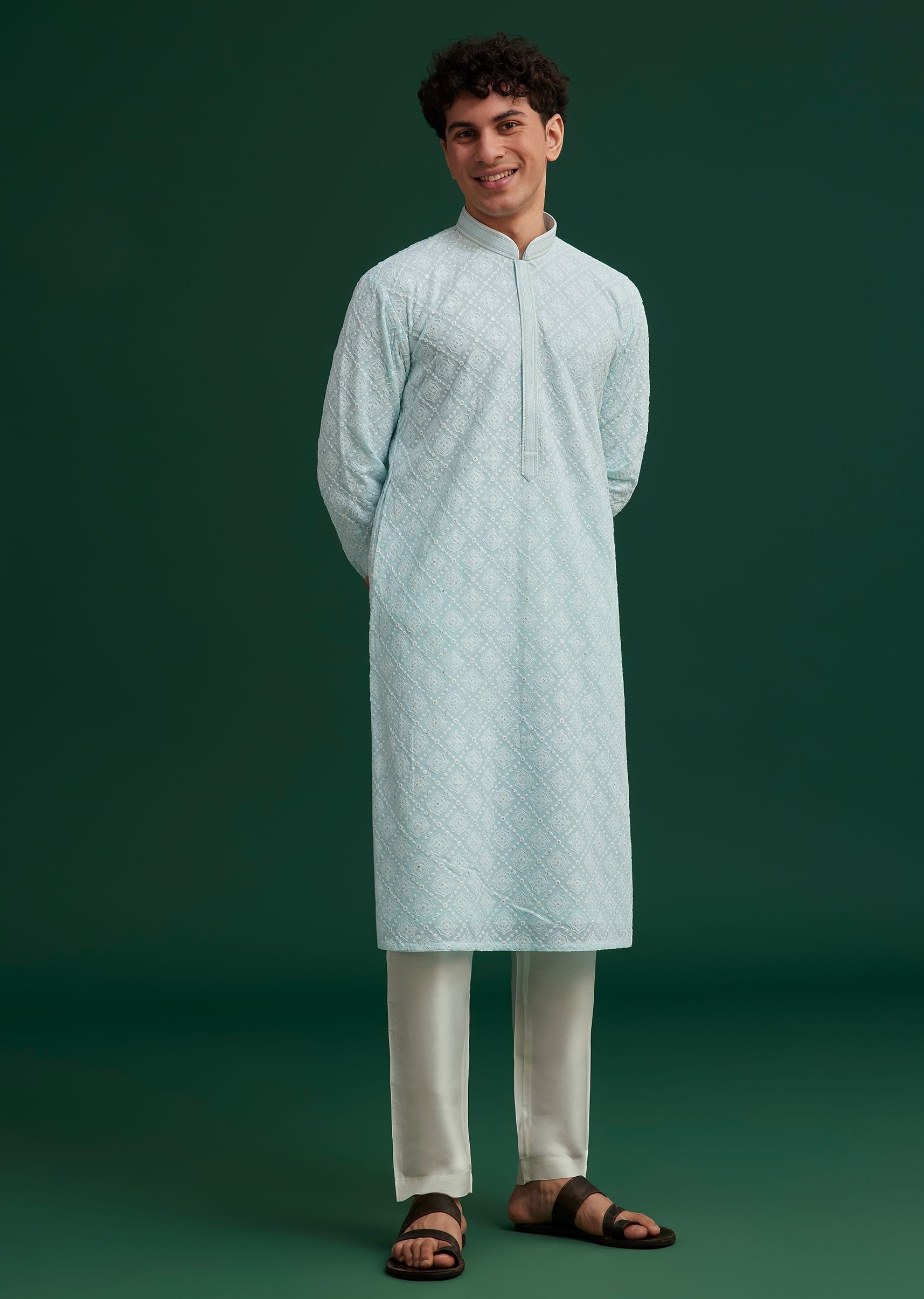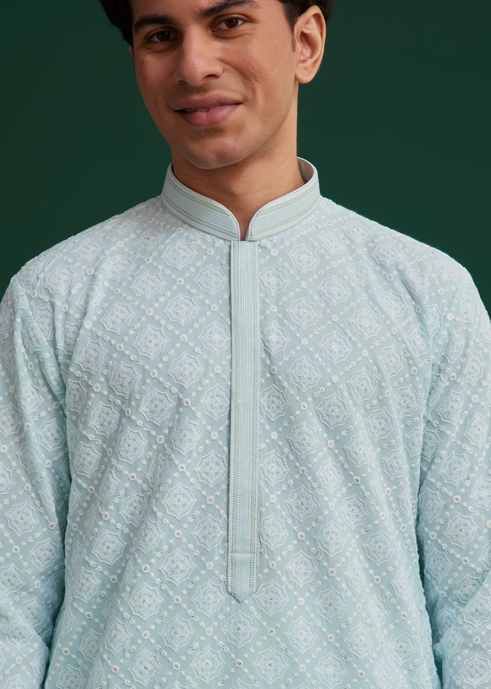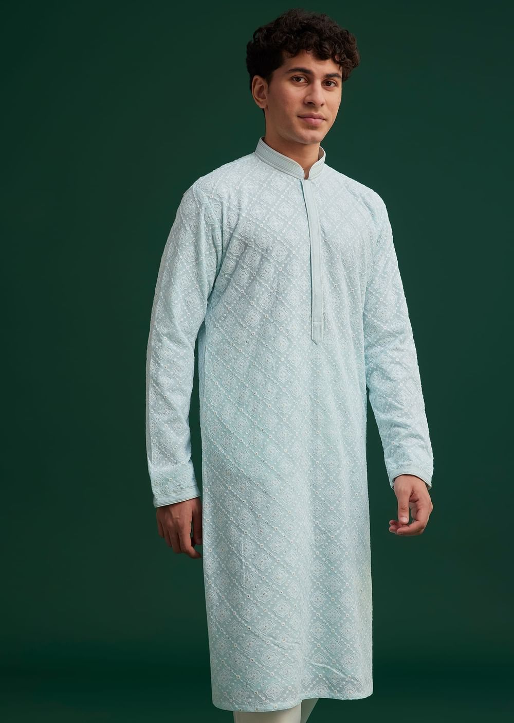 - Embrace Understated Elegance With This Blue Georgette Kurta Set Delicately Embroidered With Intricate Patterns That Enhance Its Refined Charm.