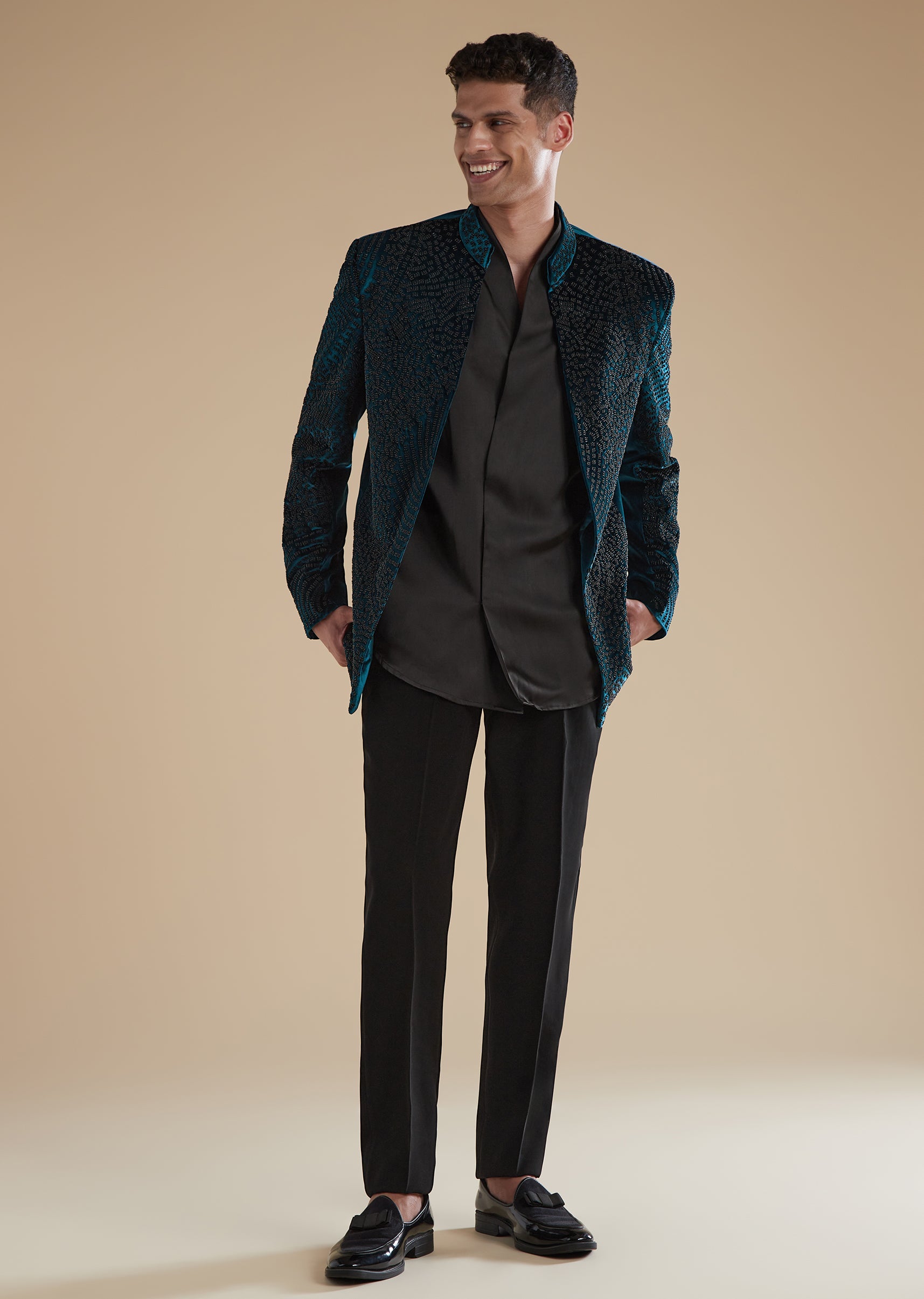 Fit Tips:Ensure the mandarin collar rests comfortably while the structured cut allows smooth movement and a crisp finish throughout the event.