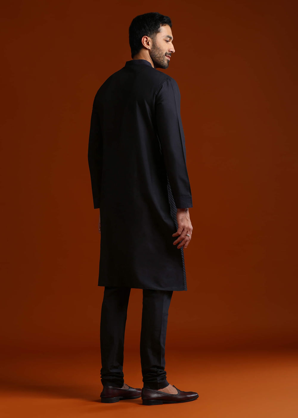 If you like texture without embellishment, this blue polyester men’s kurta set runs slim pintucks down the front for quiet definition. The colour holds strong indoors and out, keeping the... More Product Details