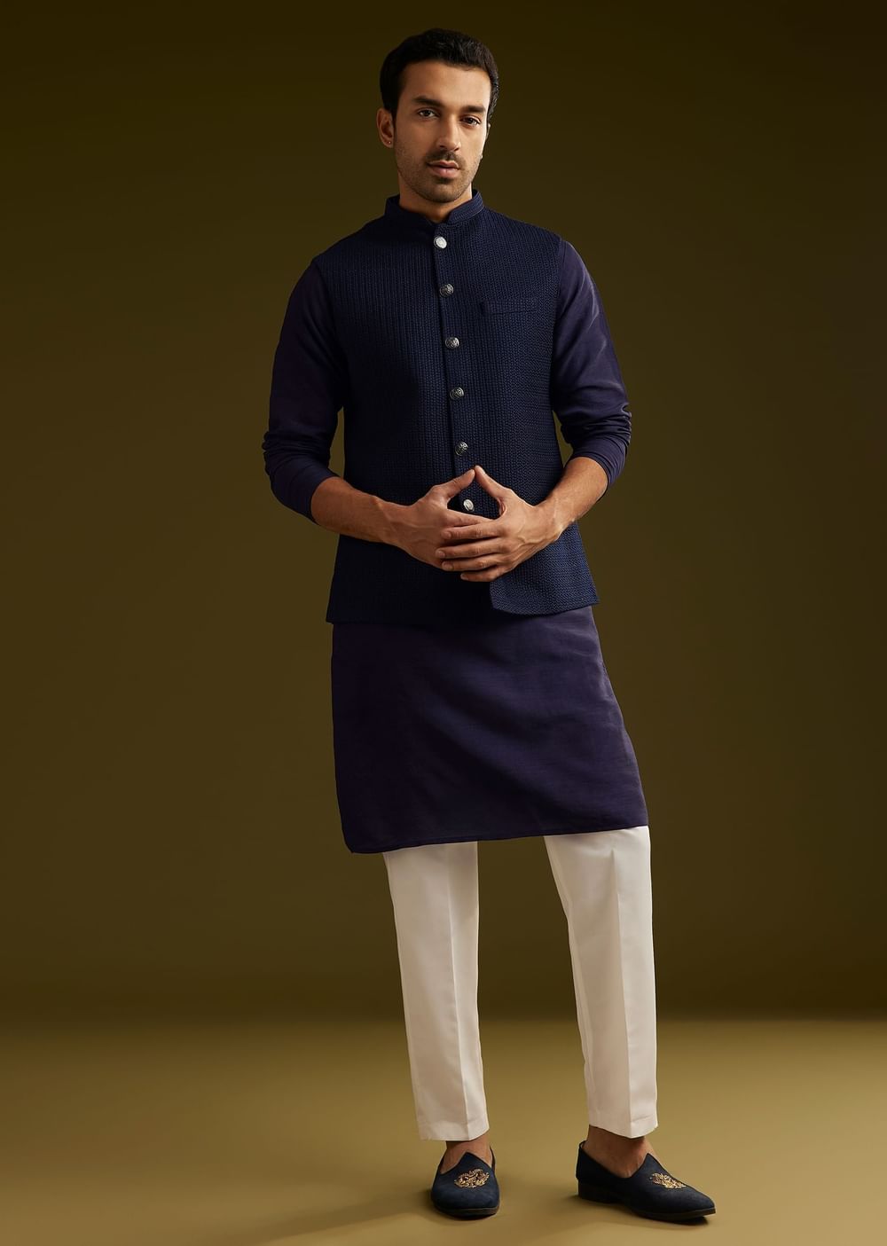 A refined blue rayon kurta jacket set featuring a simple and sophisticated design. The mandarin collar and full sleeves enhance its timeless appeal..Awarded As The Most Trusted Brand We'Re Delivering... More Product Details