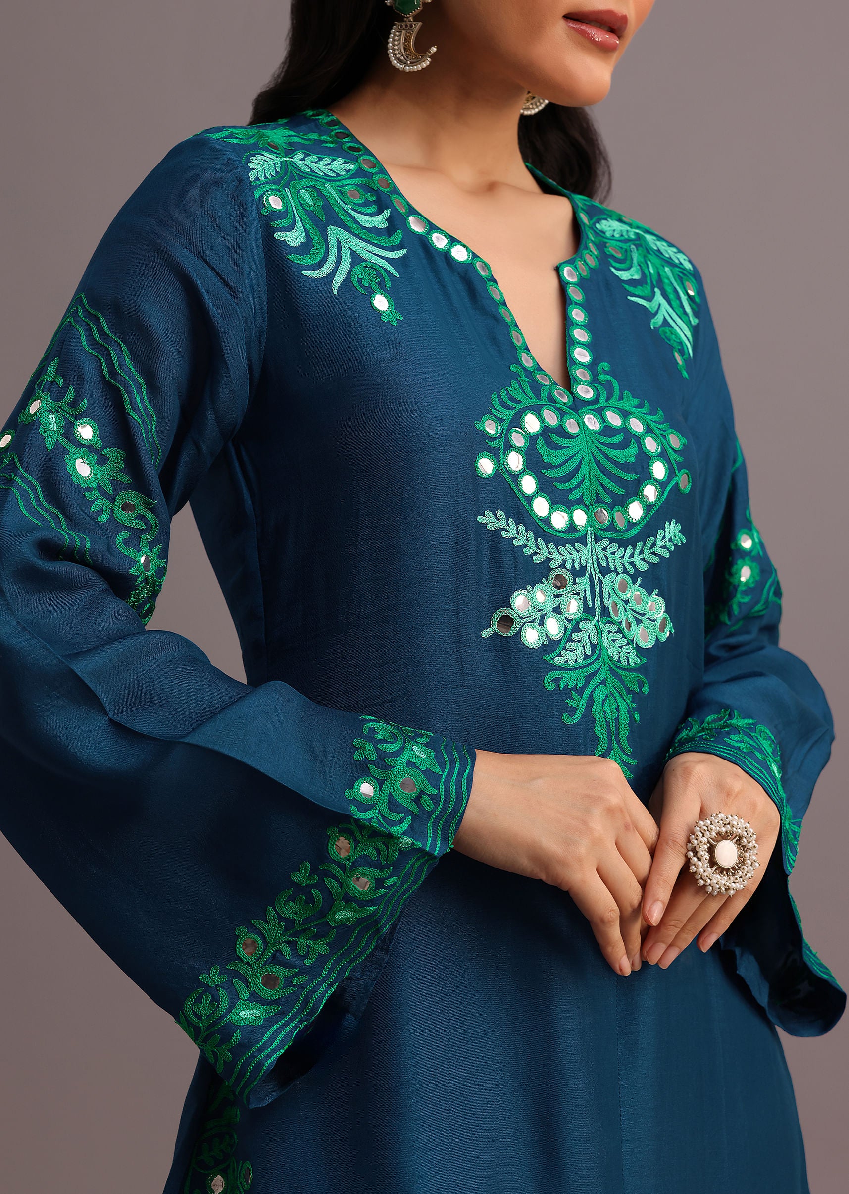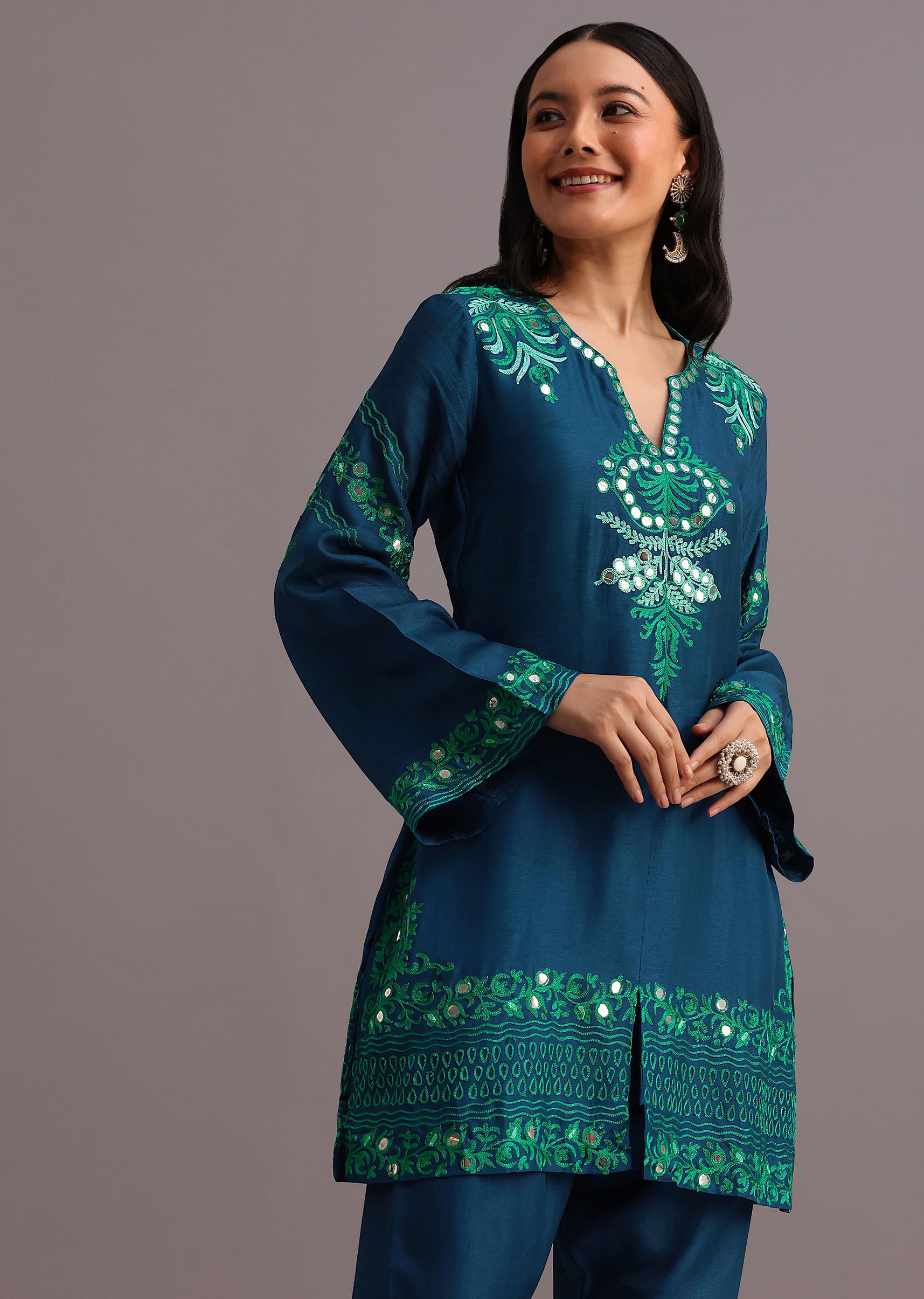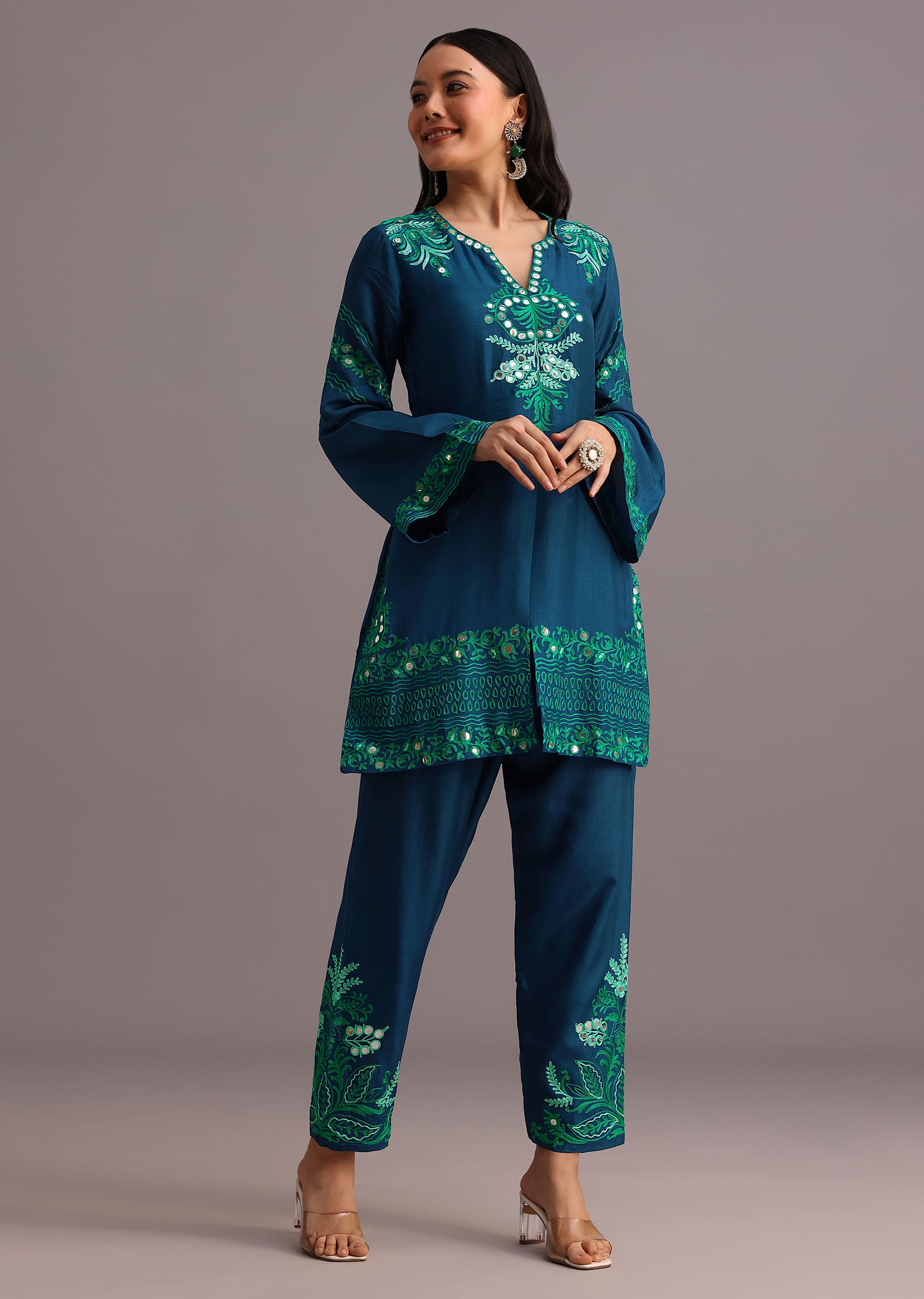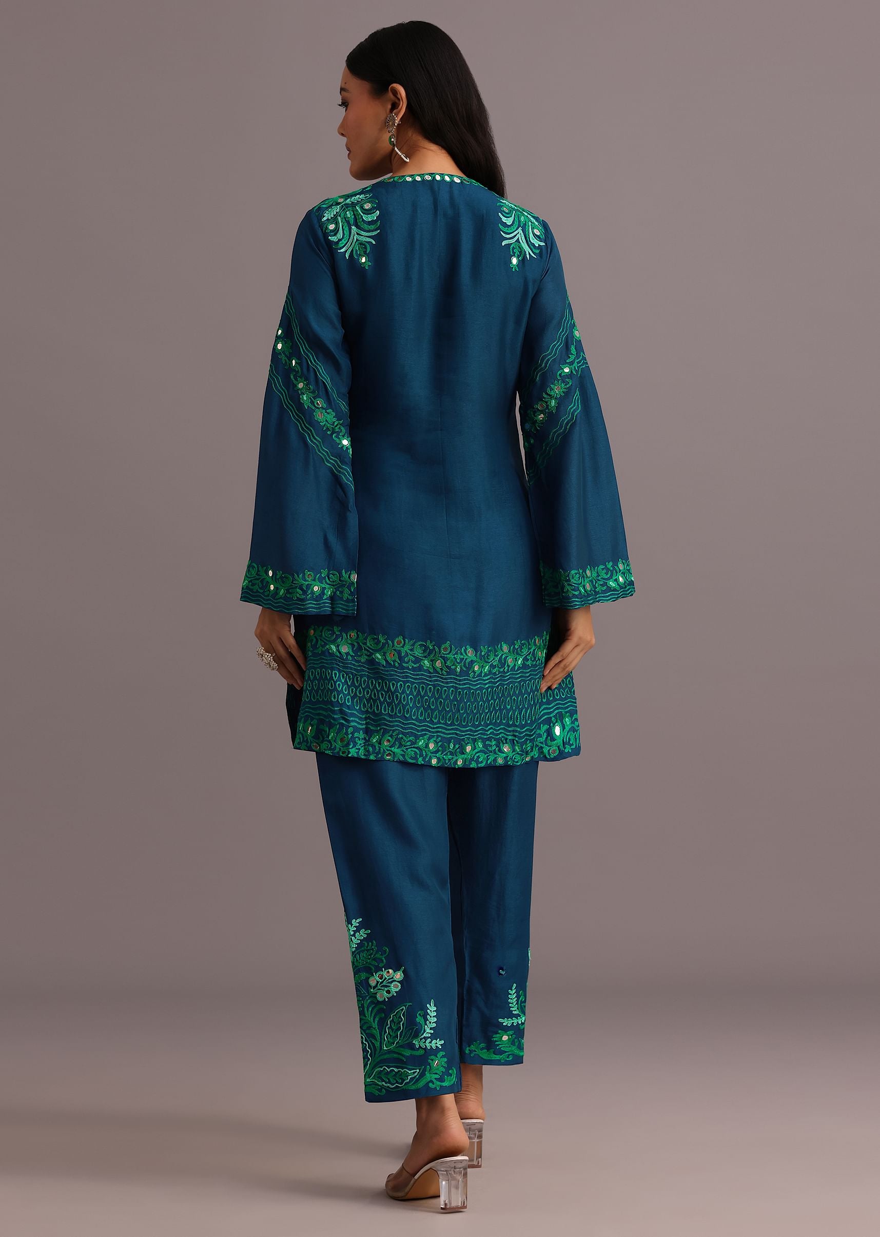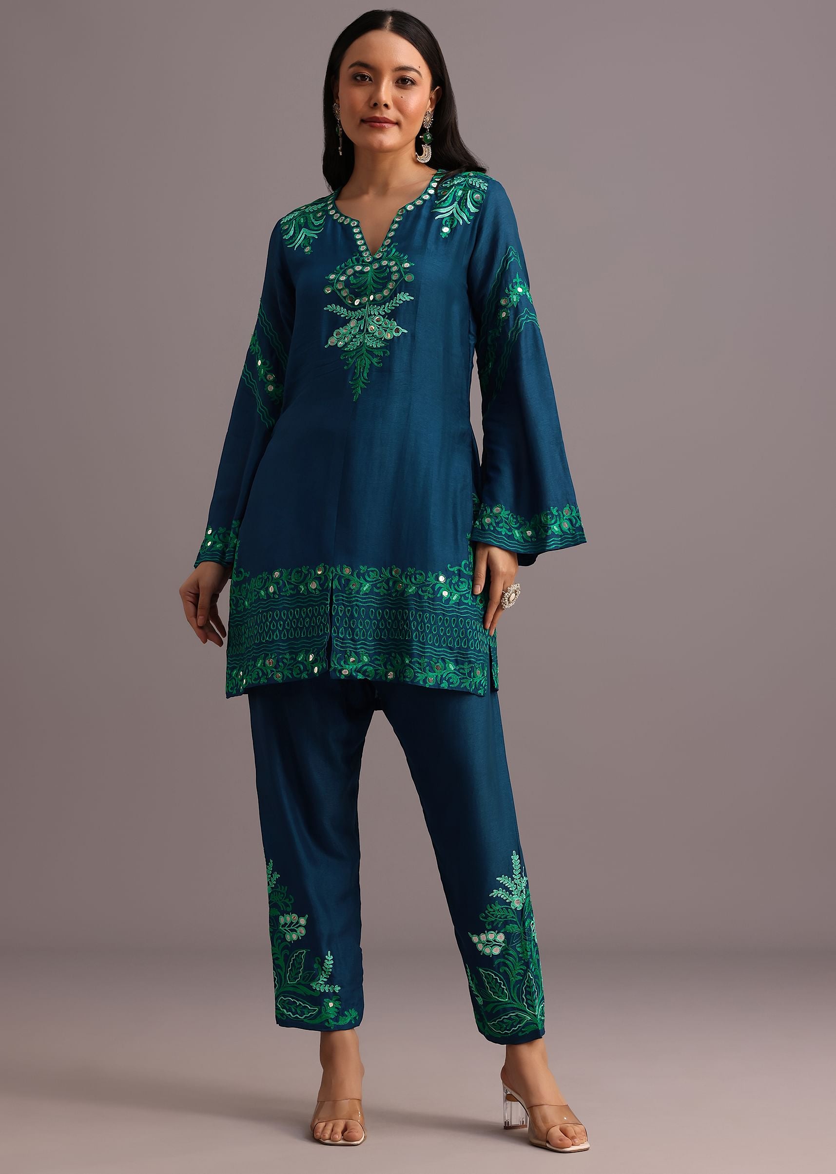 The coord set a versatile piece features a stunning blend of resham work and foil mirror embroidery creating a mesmerizing visual effect.The intricate patterns and delicate details make this piece truly special.The matching resham work on the pants adds a subtle yet sophisticated touch.Perfect for attending a formal event or a casual gathering. Awarded as the Most Trusted Brand, we're delivering styles you love, just as promised.