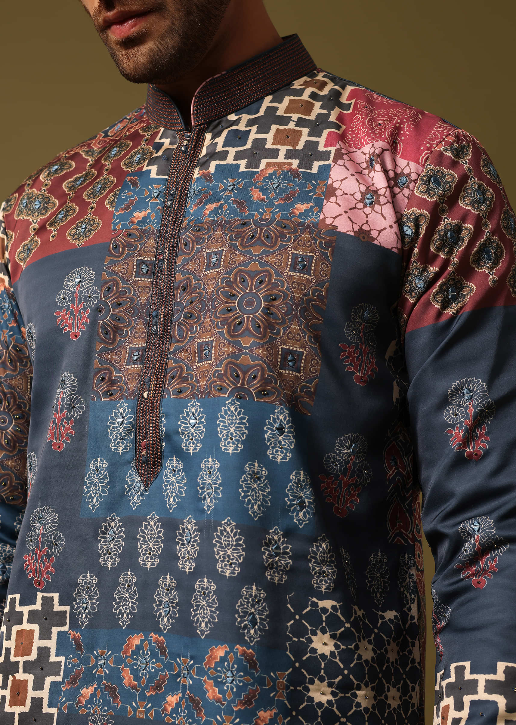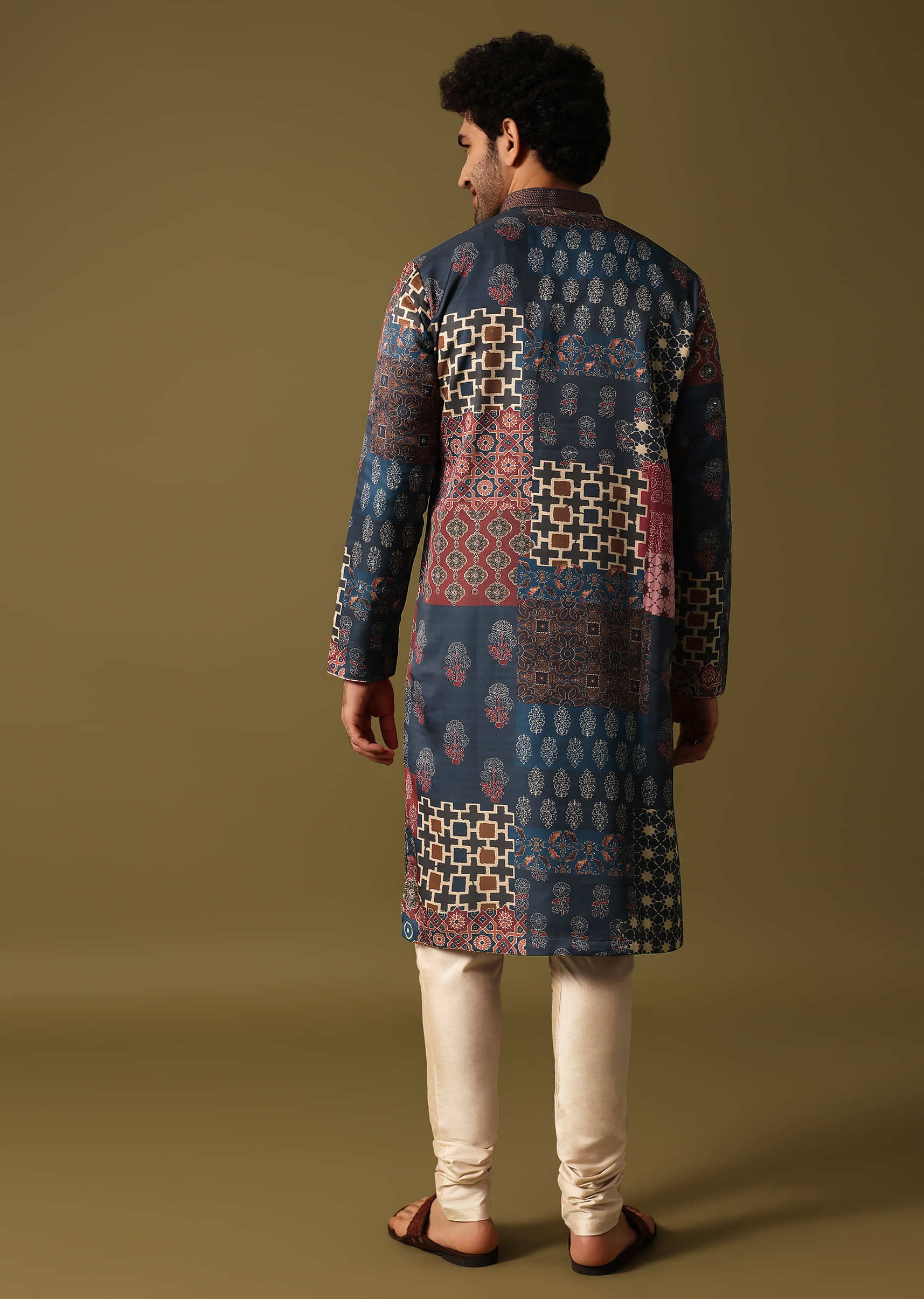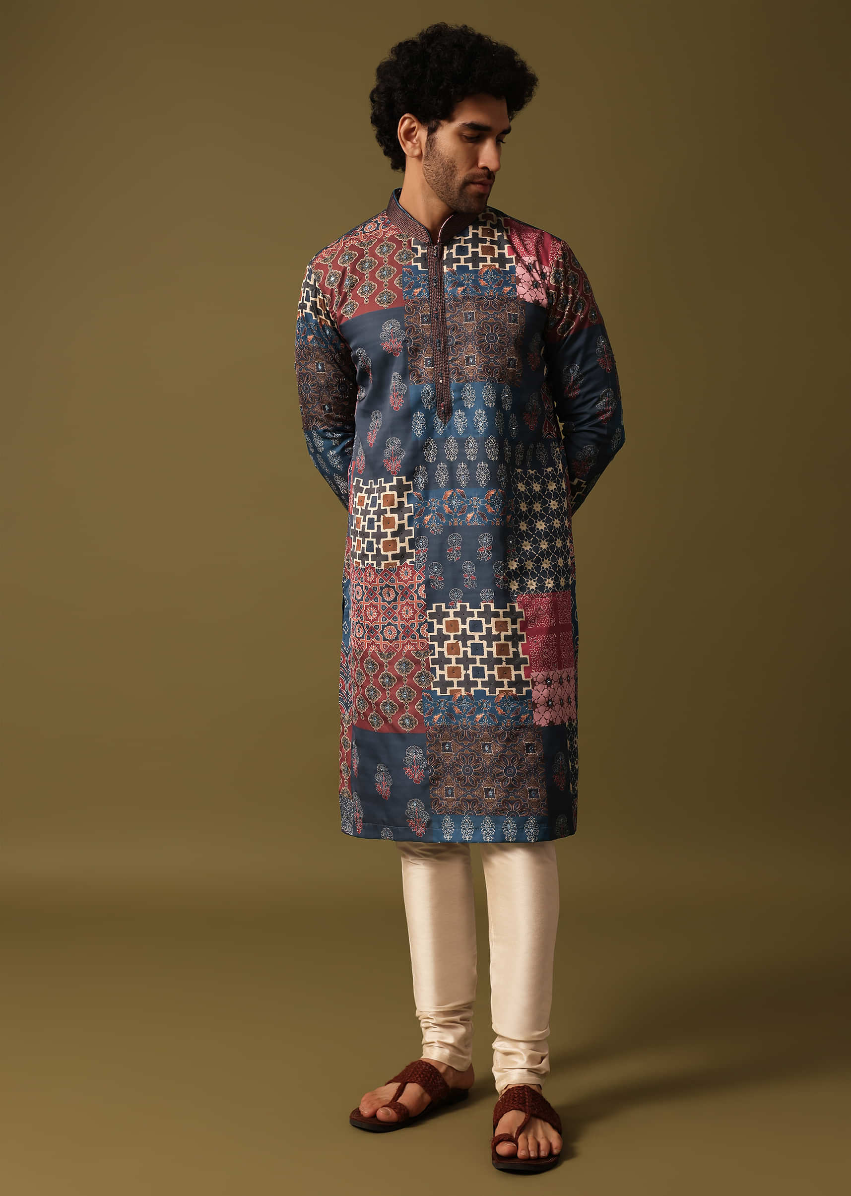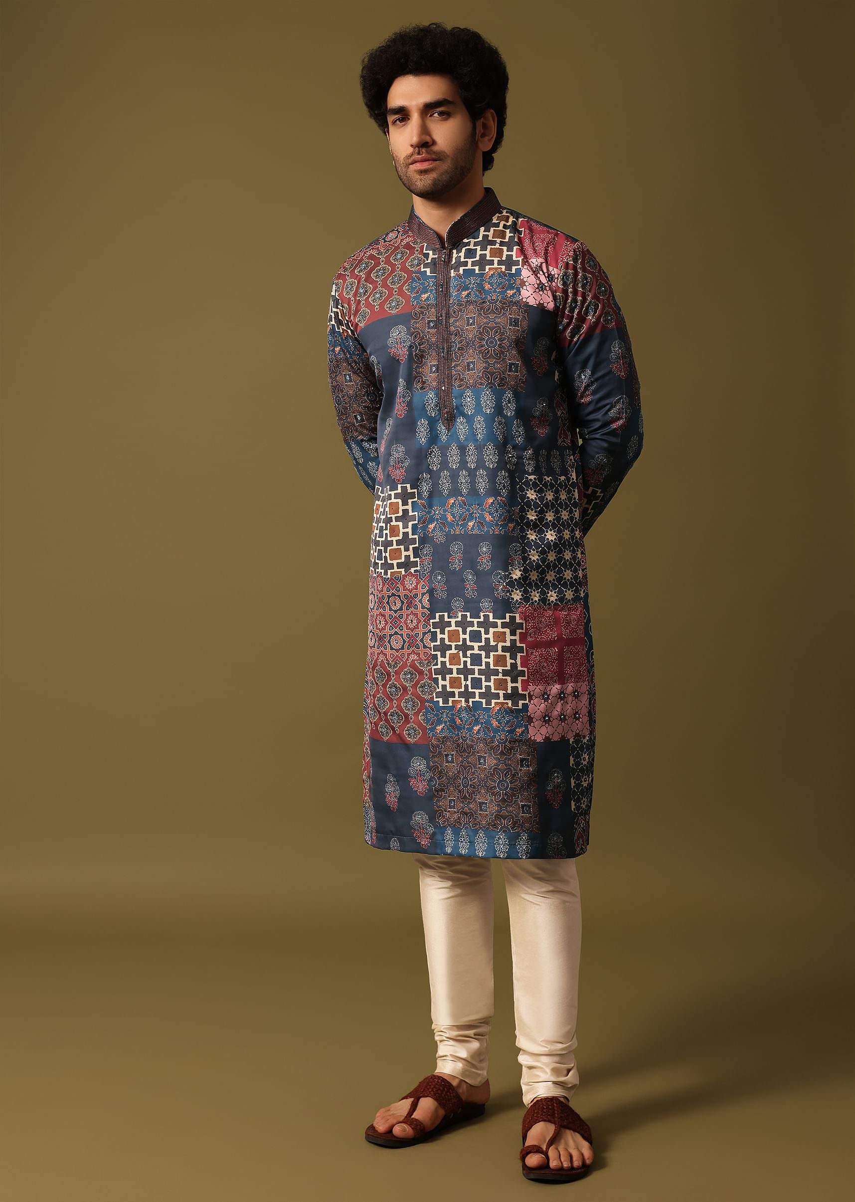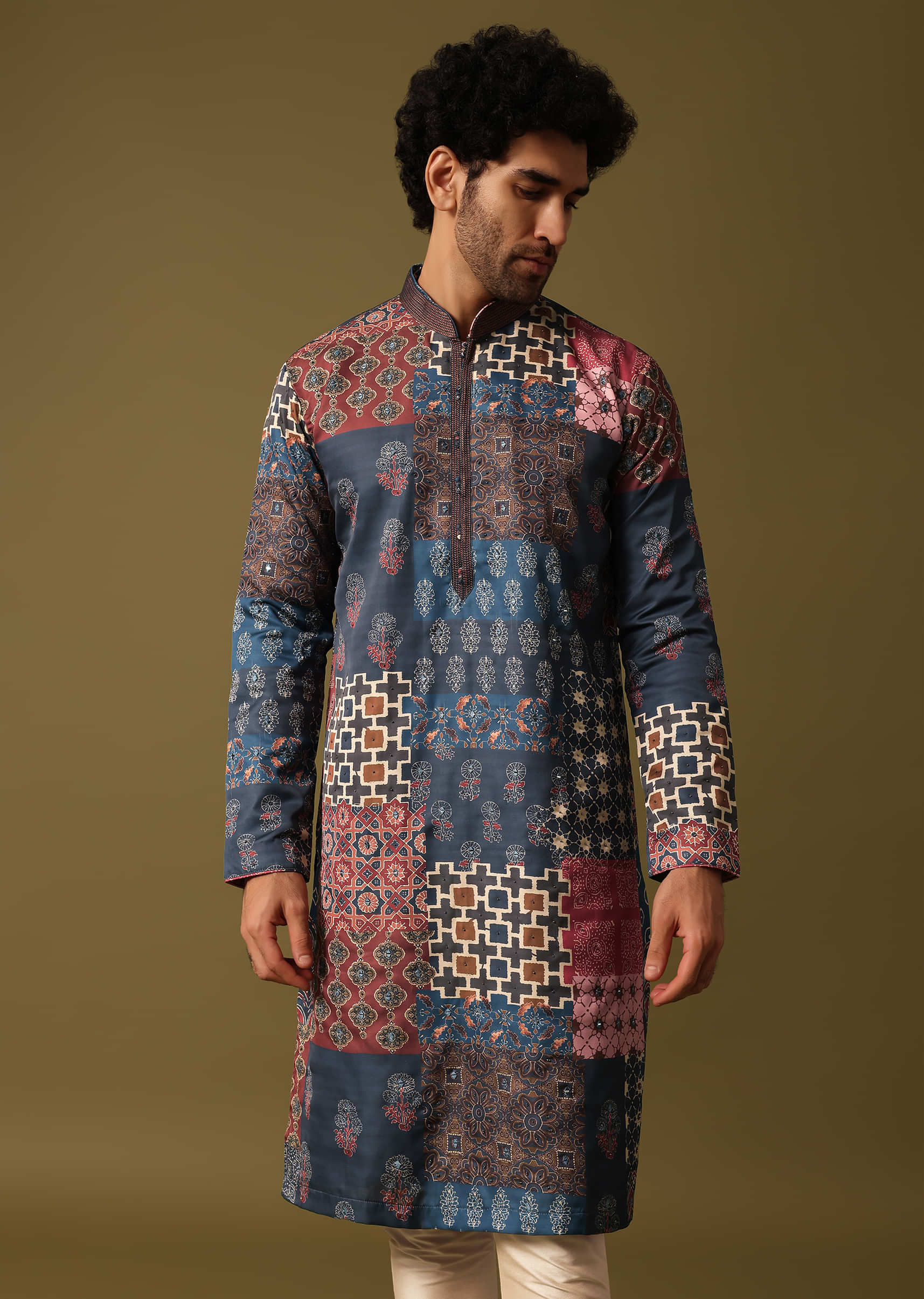 Revel in sophistication with our blue kurta pyjama designed for festive celebrations. Crafted from luxurious silk this ensemble features exquisite prints and bead embroidery. The set comprises a kurta and pyjama. Awarded as the Most Trusted Brand, we're delivering styles you love, just as promised.