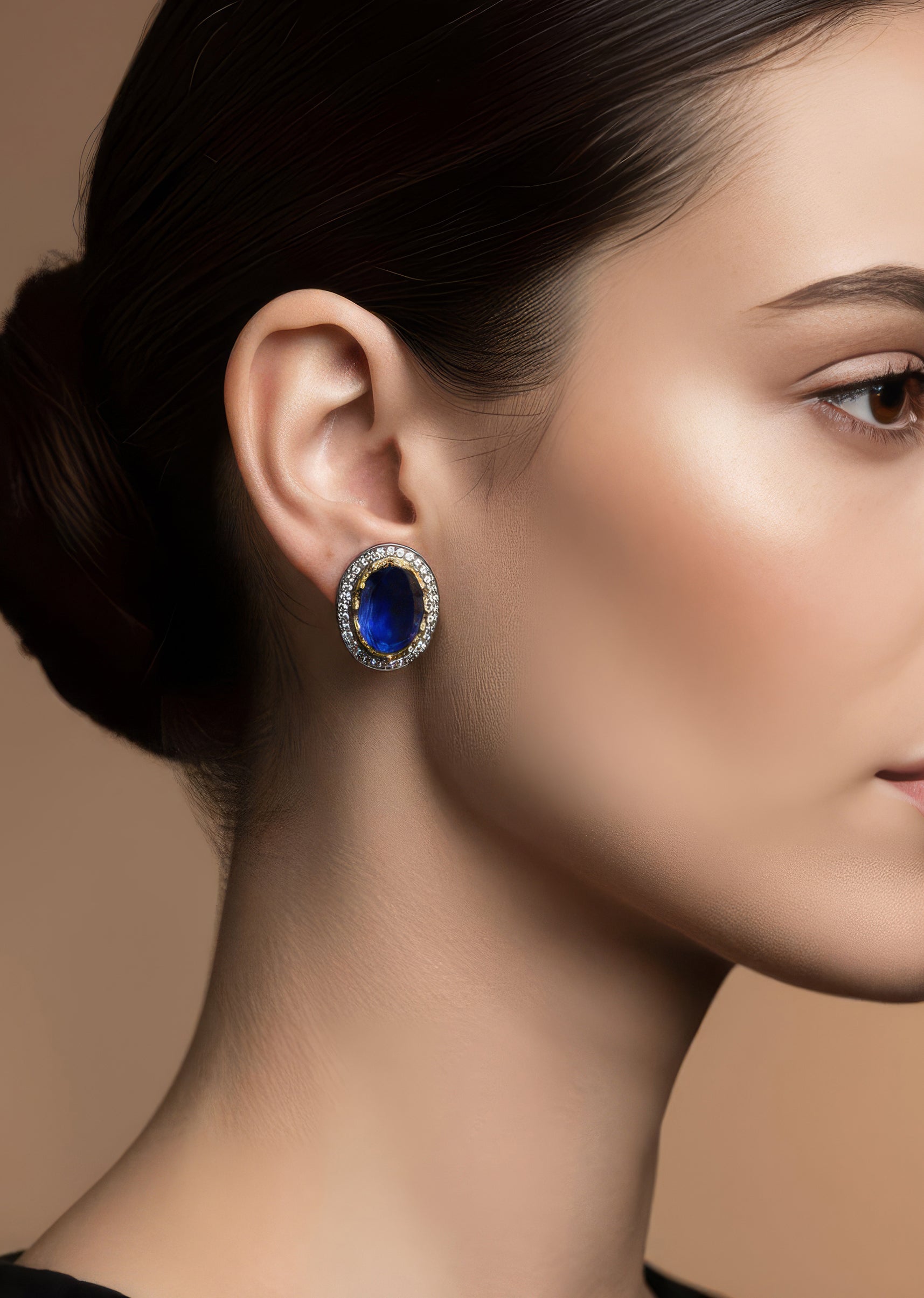A striking pair of earrings crafted with deep blue and black stones framed by refined diamond inspired detailing. The bold colour pairing and intricate surround work create a sophisticated statement perfect for festive evenings, cocktail functions, and wedding celebrations. Awarded as the Most Trusted Brand, we're delivering styles you love, just as promised.
