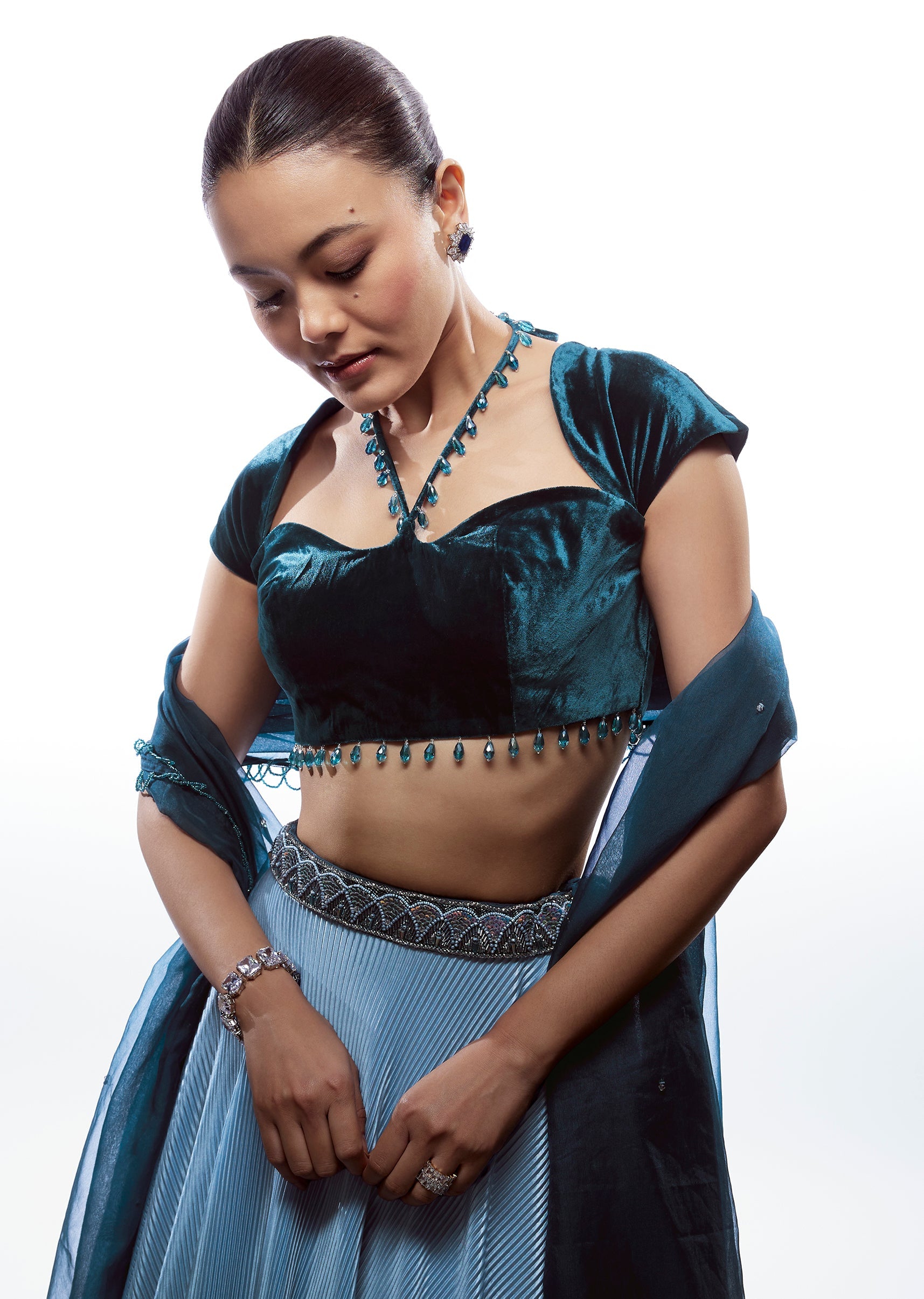 Pair with a black or silver saree for a high-contrast, party-ready look.