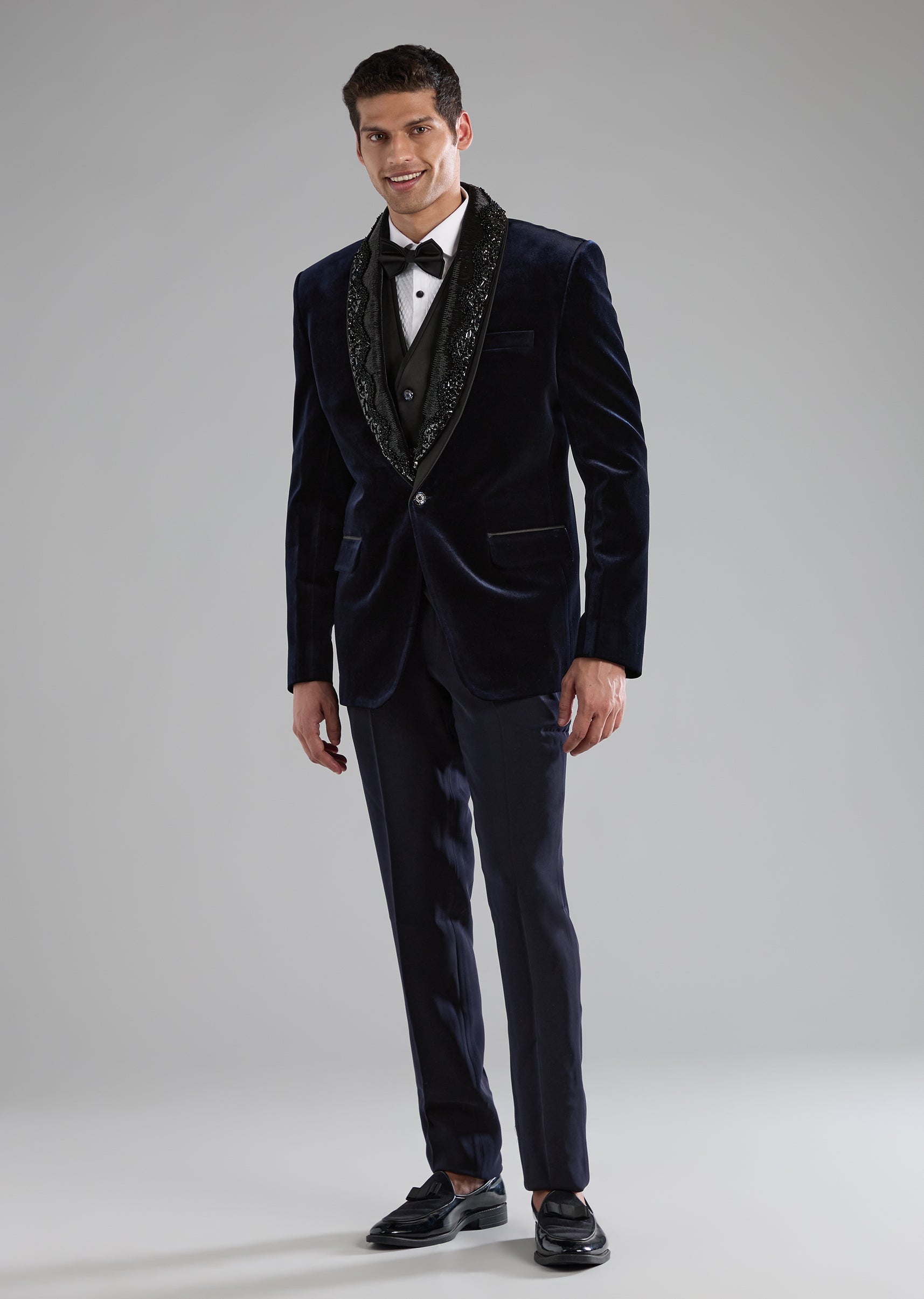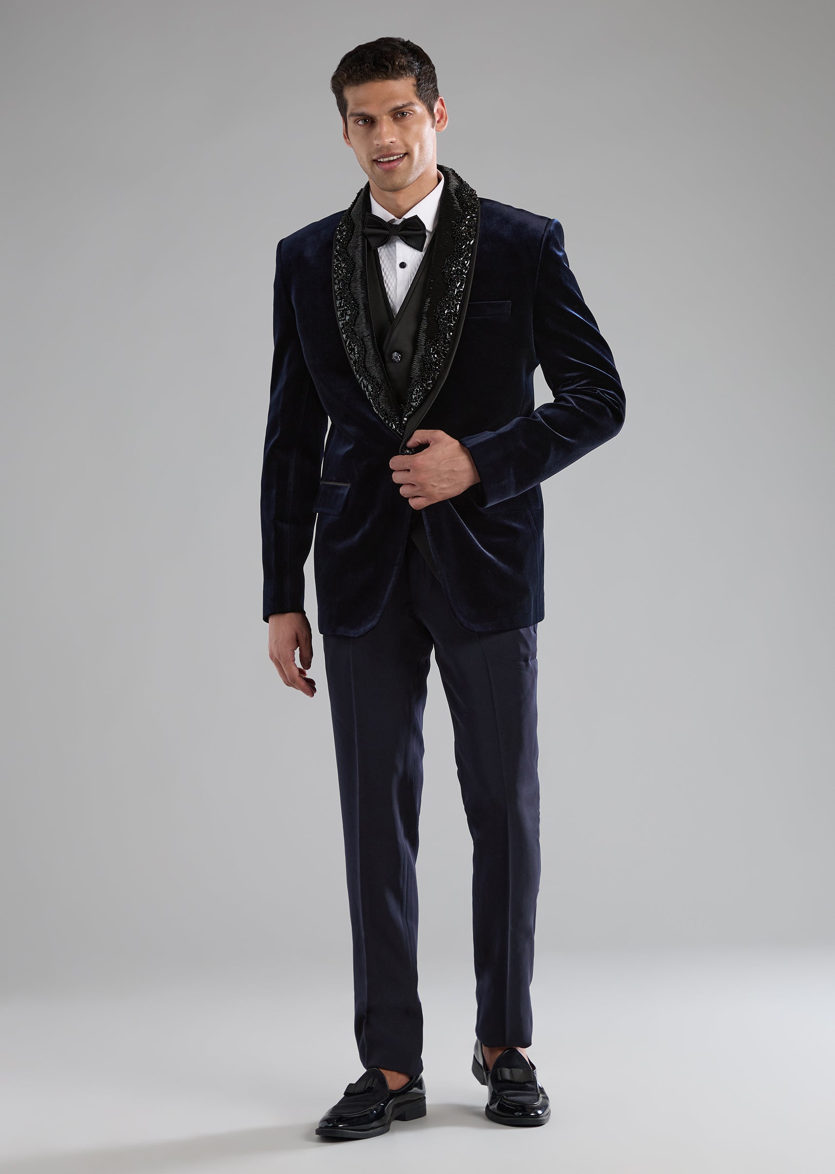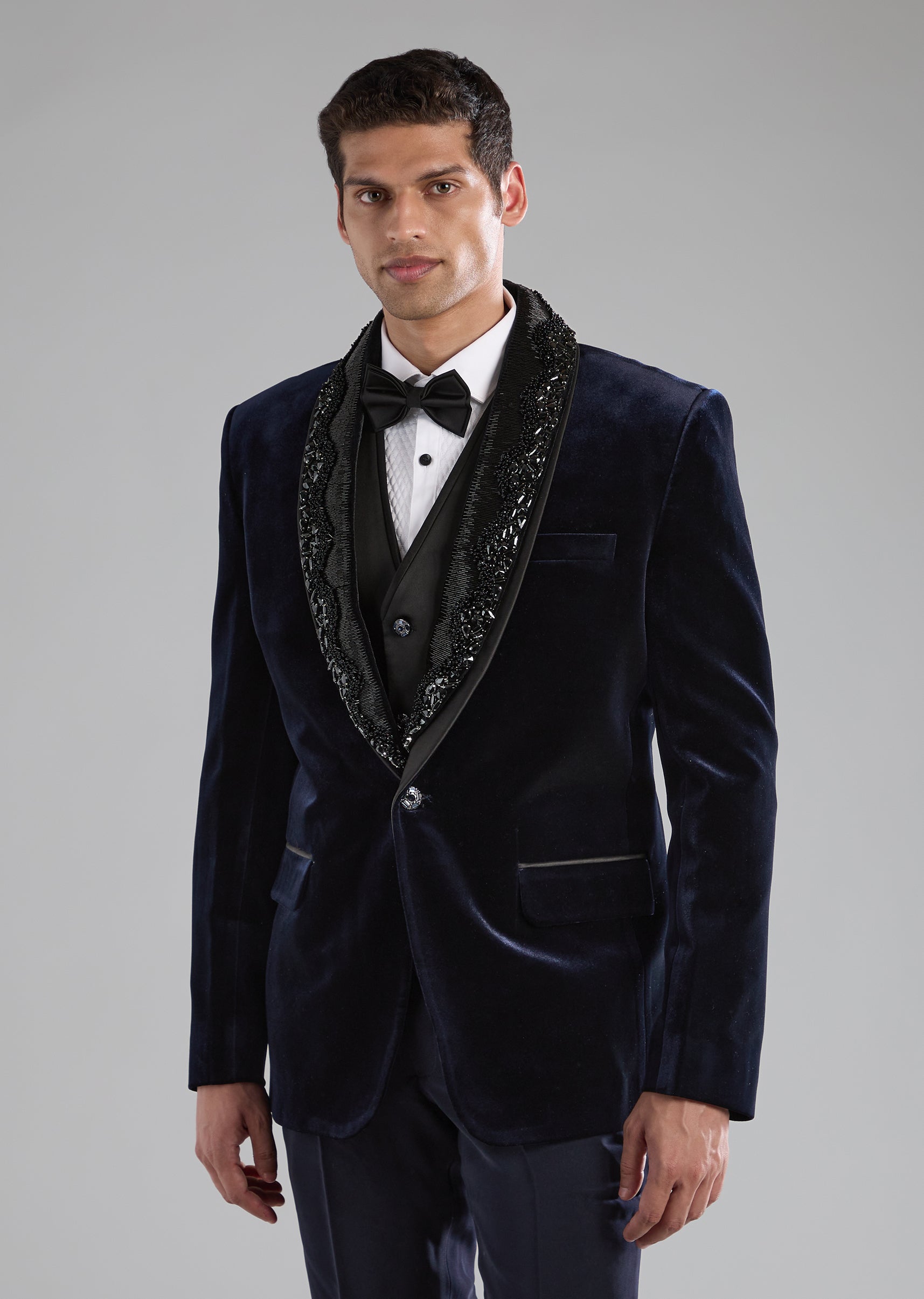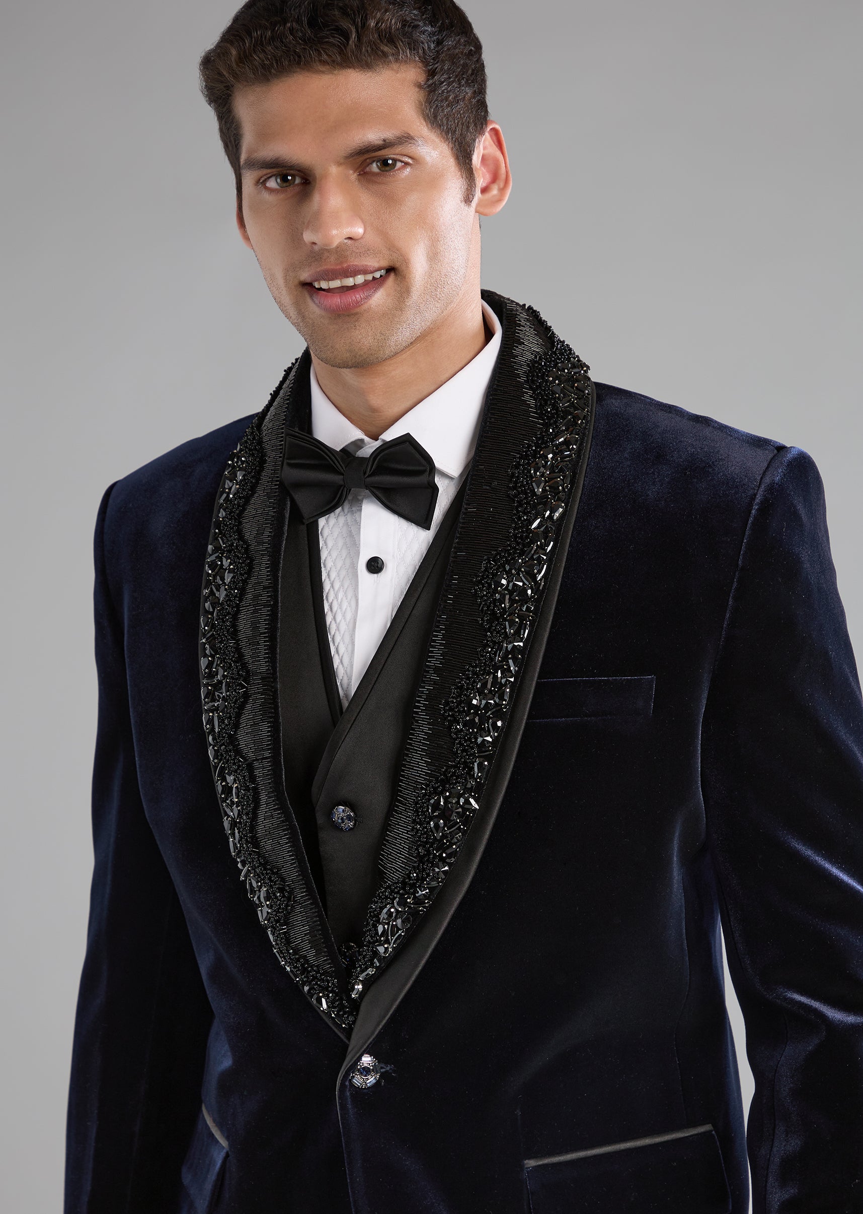 Crafted for grand celebrations, this velvet zardosi tuxedo is a statement of regal sophistication. The plush velvet fabric is elevated with intricate zardosi embroidery, adding rich texture and ceremonial charm.... More Product Details