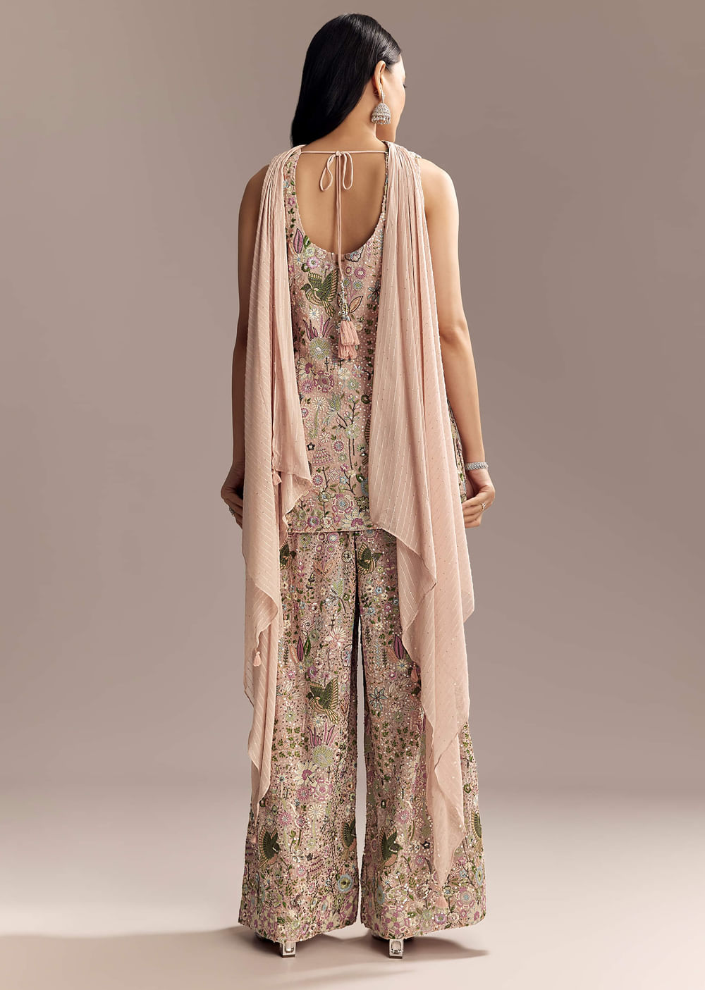 Blush Pink Georgette Palazzo Suit With Sequins And Resham Work