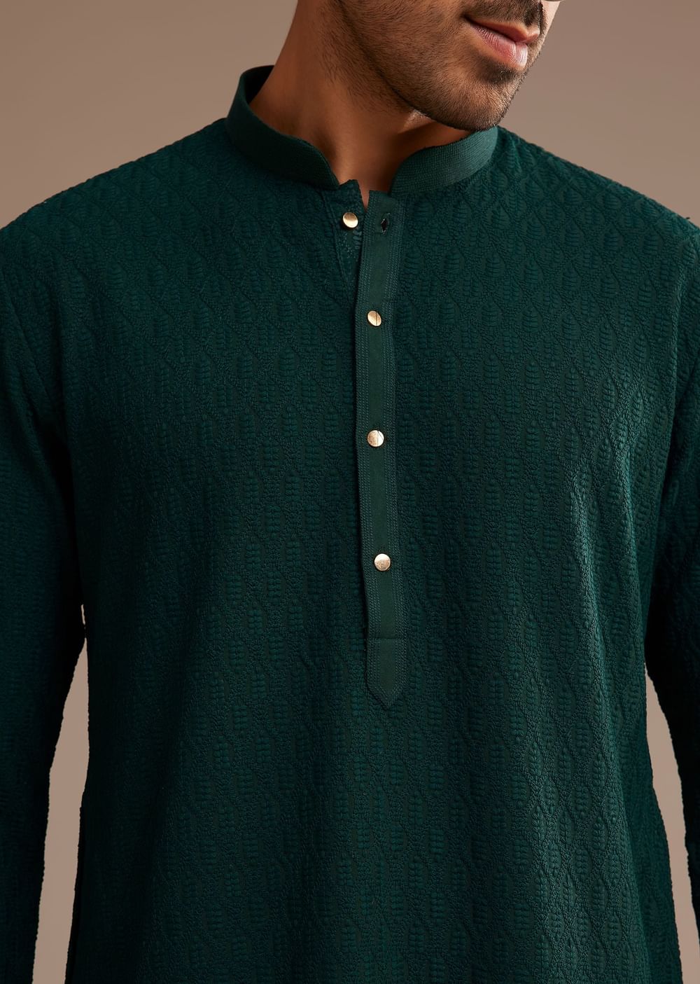 Step into timeless elegance with this Bottle Green Rayon Embroidered Kurta Set. Crafted from premium rayon, it features delicate self-work embroidery that adds a layer of sophisticated charm. The deep... More Product Details