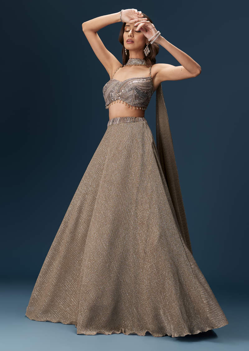 Brown Bridesmaid Lehenga With Choker Net Dupatta And Embellished Blouse