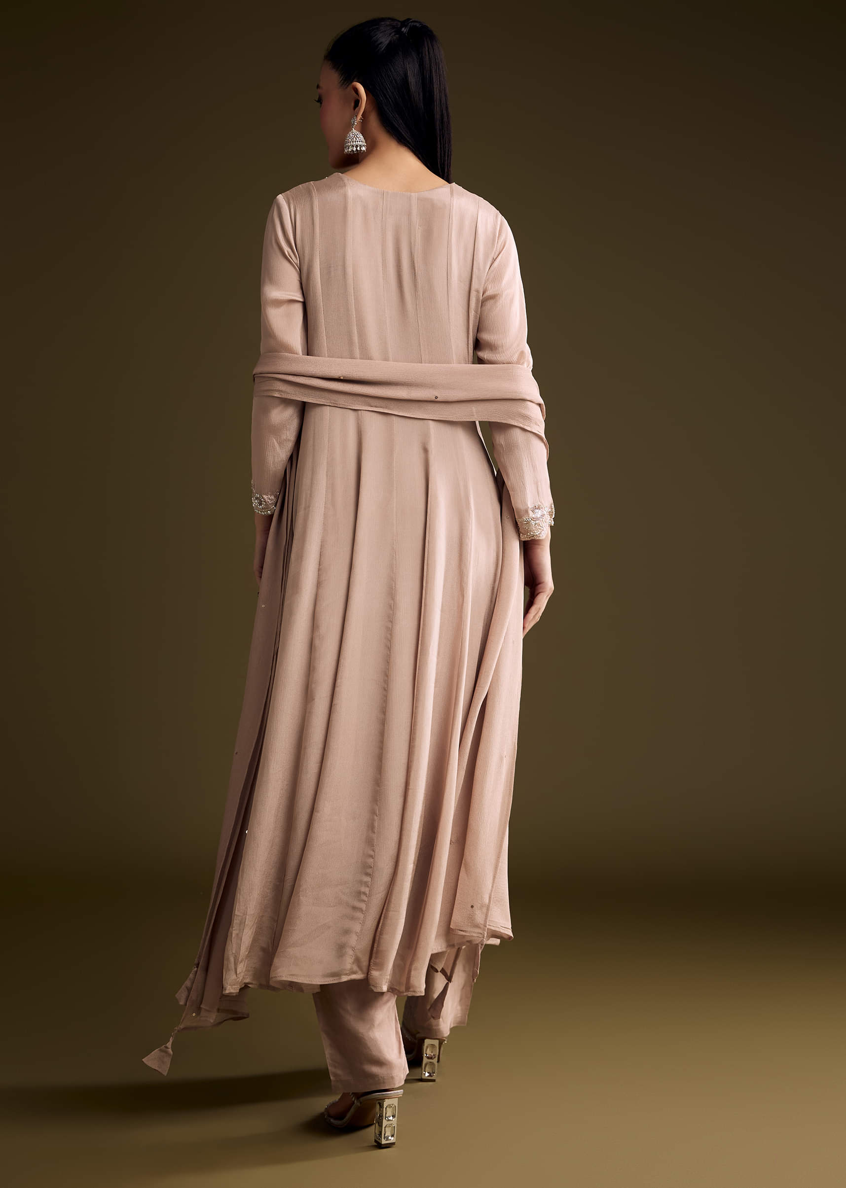 Brown Chinon Anarkali Suit With Sequin Embroidery