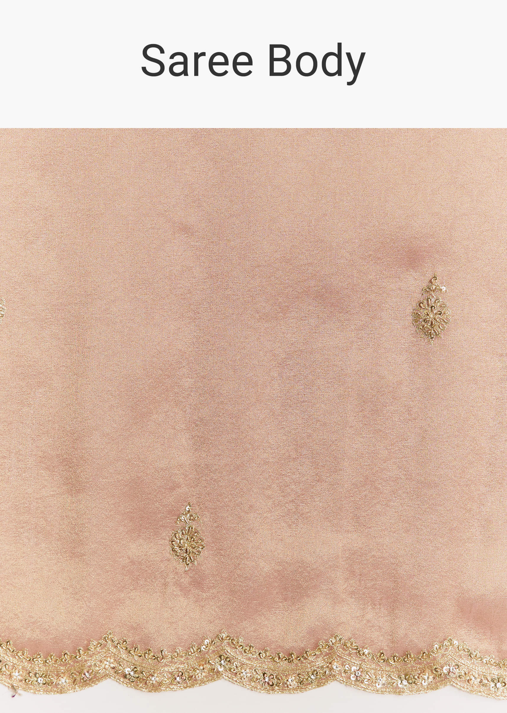 Brown Rust Tissue Saree With Moti Beads And Sequins