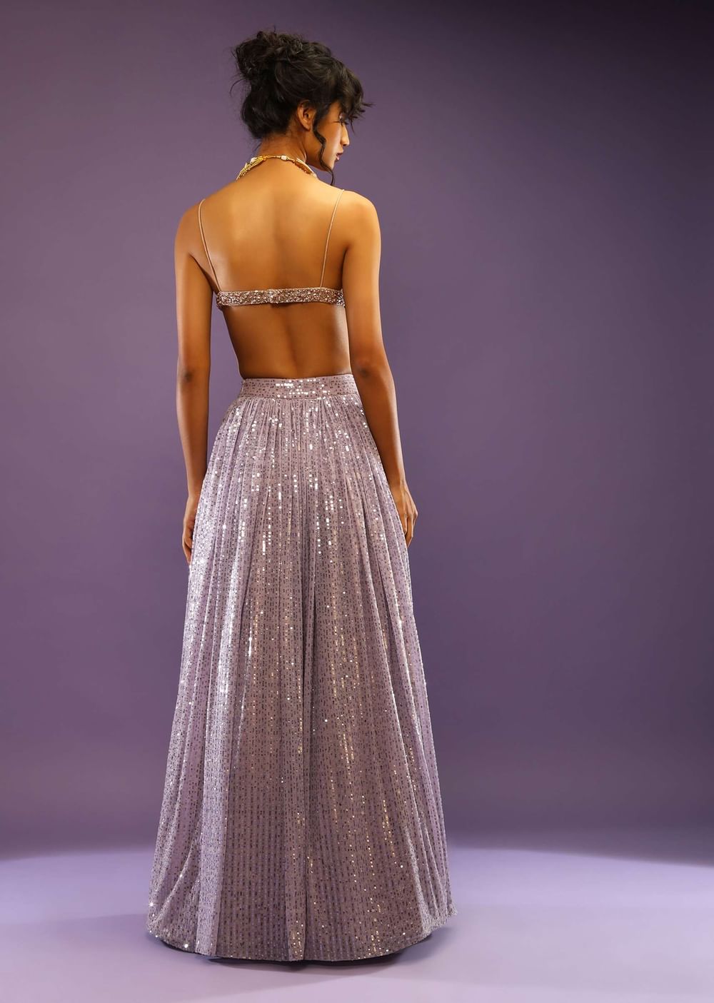 Champagne blouse with plunging neckline and heavily embroidered using moti, beads and cut dana work. It is crafted with spaghetti straps, padding and back hook closure. Awarded as the Most... More Product Details