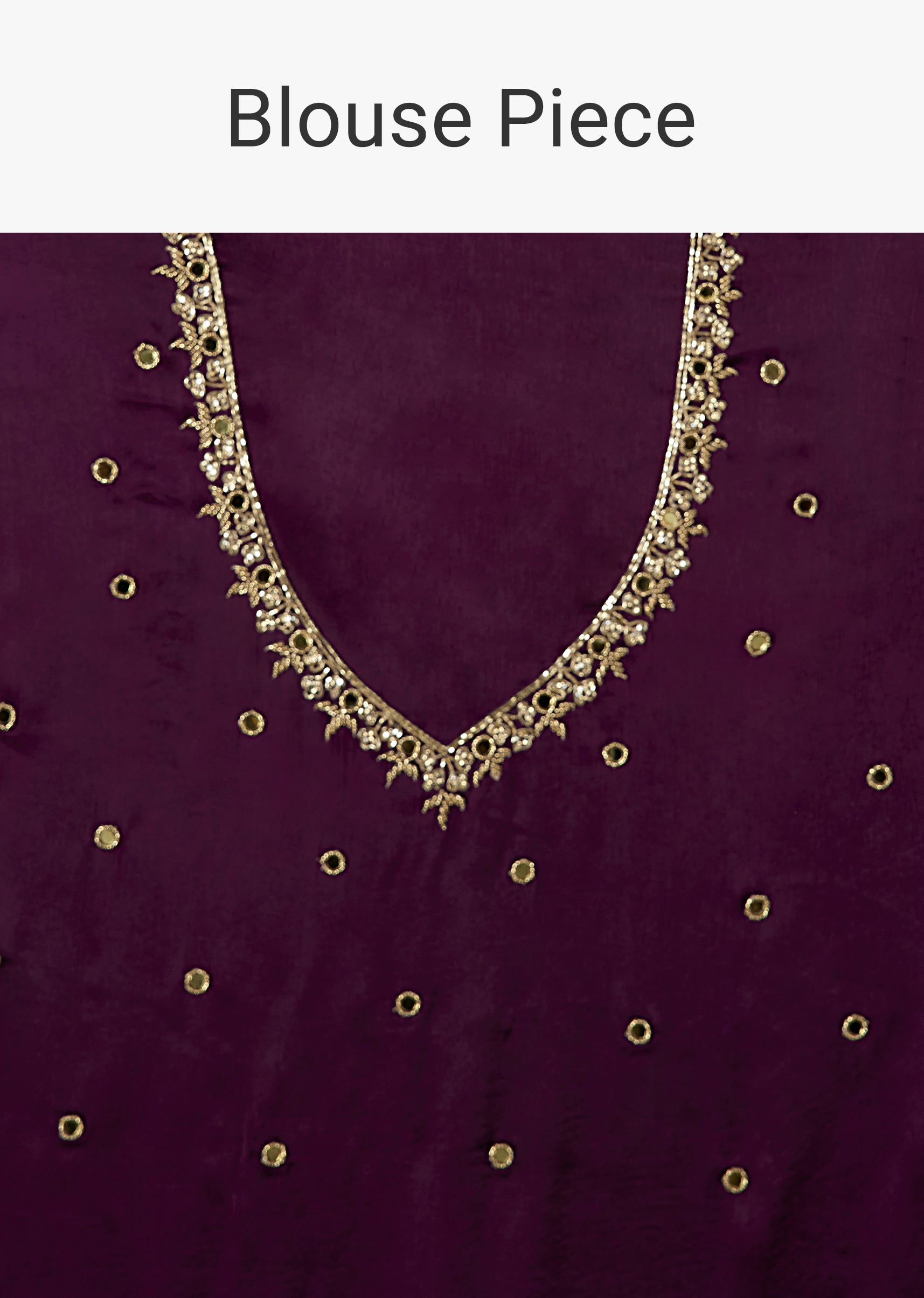 Make A Dazzling Statement With This Chinon Satin Saree, Embellished With Cutdana And Mirror Work All Over And Finished With A Scallop Border. Its Shimmering Details And Luxurious Texture Make... More Product Details