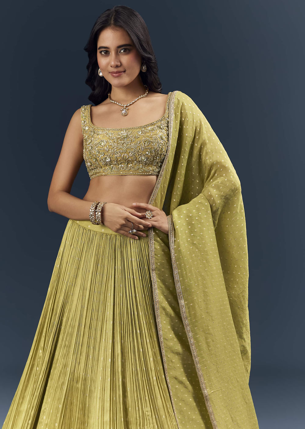 Citrus Green Banarasi Silk Bridesmaid Lehenga With Delicate Hand Embroidery