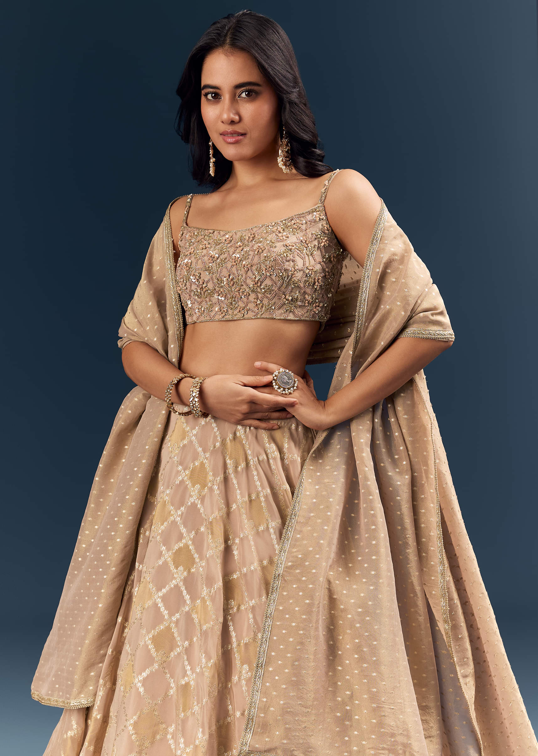 Copper Banarasi Silk Bridesmaid Lehenga With Heavy Hand Embroidery