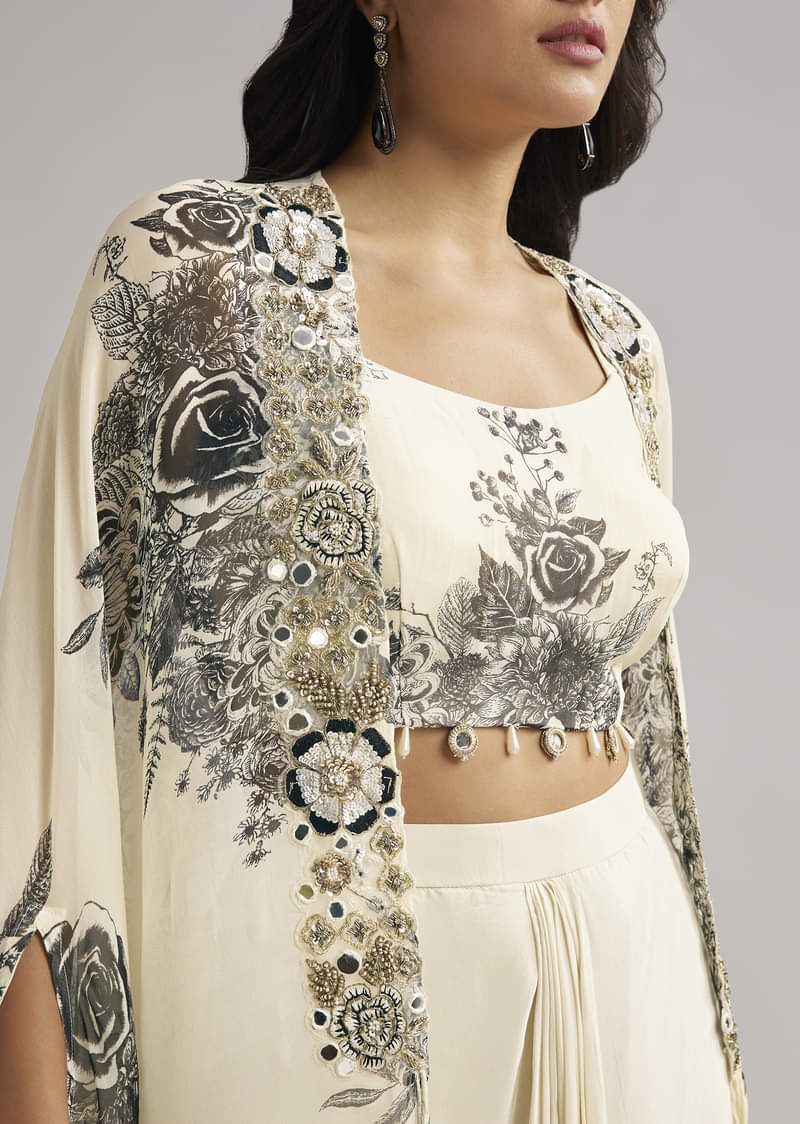 A charming floral printed crop top and skirt with an organza cape, this outfit is sunshine bottled in fabric. The flowy silhouette and breezy layers are made for twirls and... More Product Details