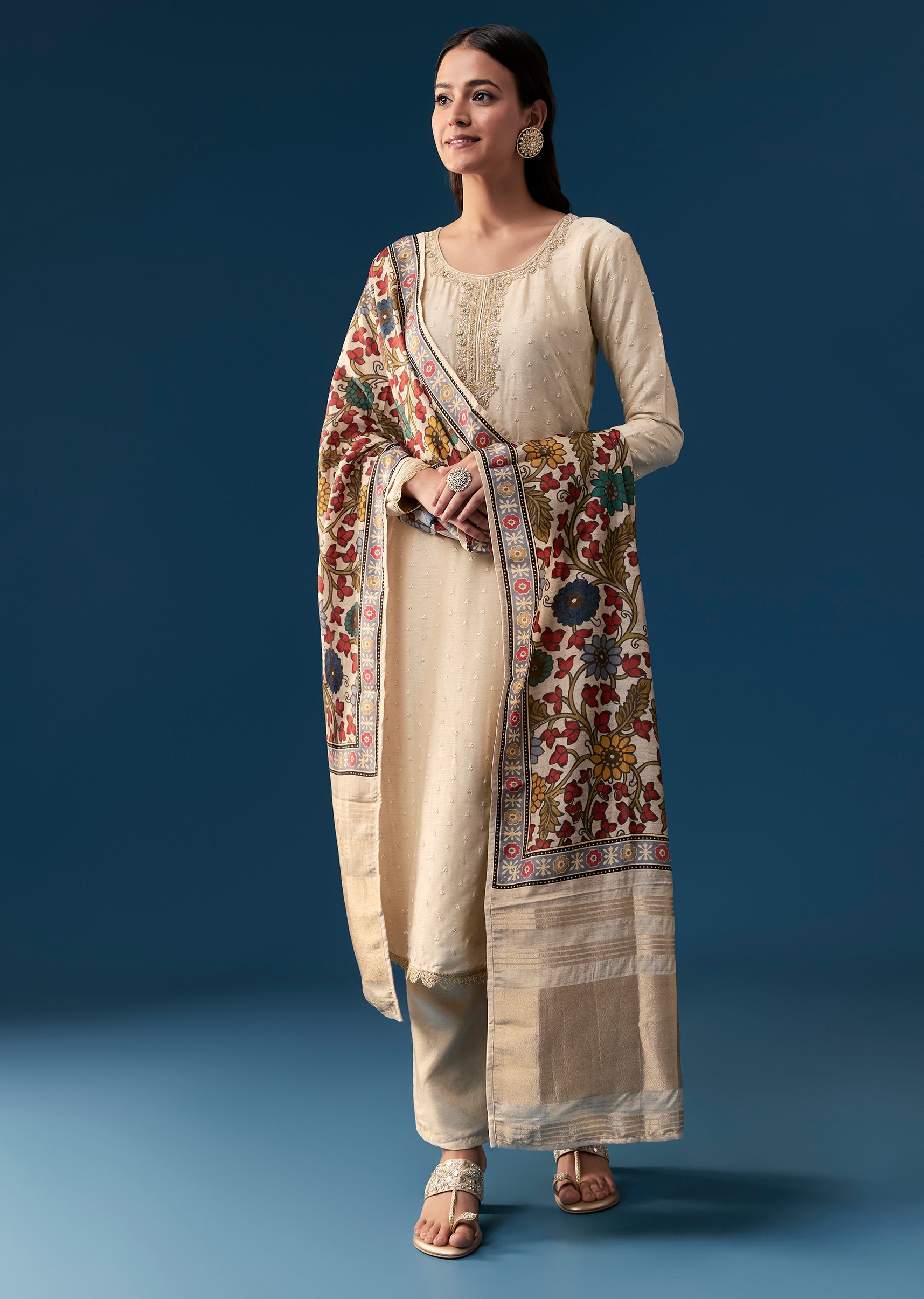 Fit Tips:The round neckline should sit comfortably at the collarbone, and the kurta should fall smoothly over the body for a flattering silhouette and ease of movement.