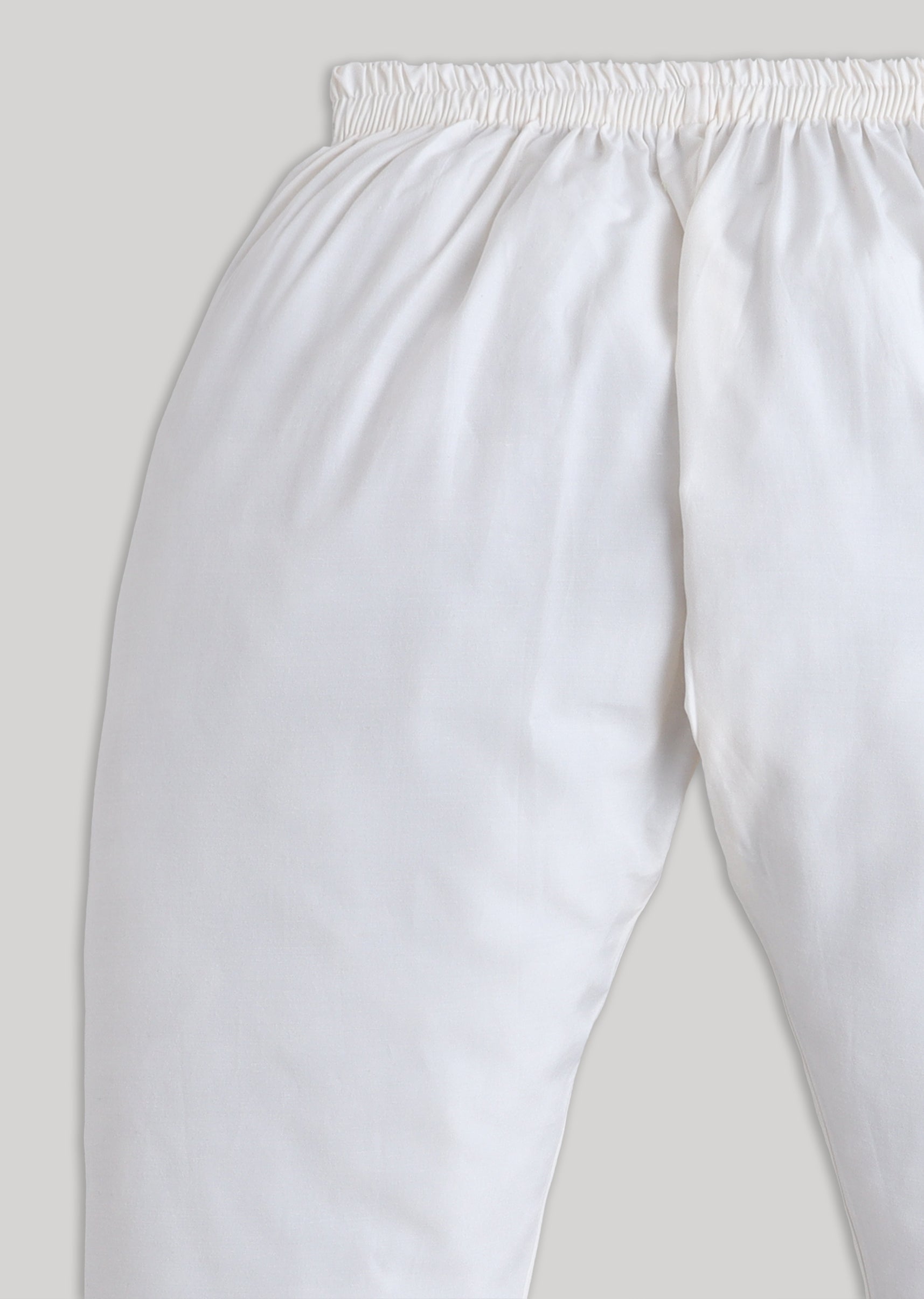 Understated and elegant, this cream cotton kurta set features minimal embroidery for a clean festive look. Designed with a mandarin collar, full sleeves and front buttons, it comes paired with... More Product Details