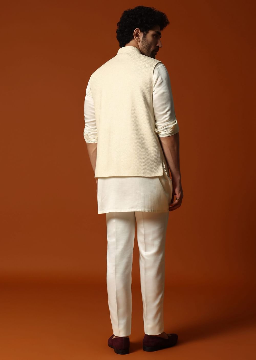 Immerse yourself in luxury with our cream kurta jacket set, thoughtfully created for sangeet and wedding gatherings. Fashioned from opulent silk fabric and adorned with intricate embroidery along the pocket... More Product Details