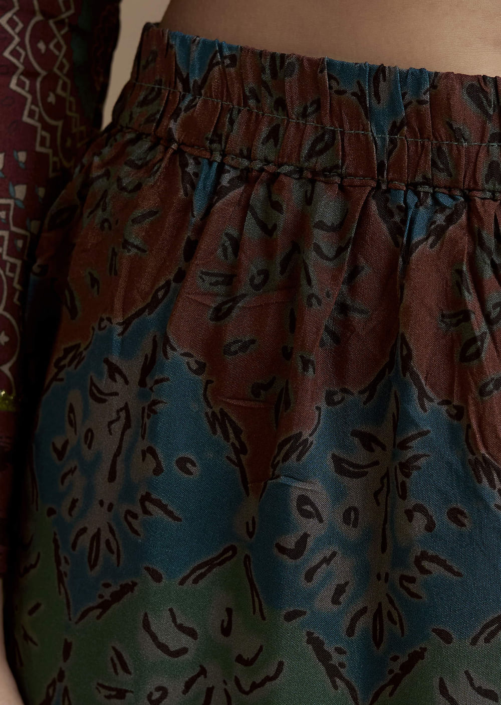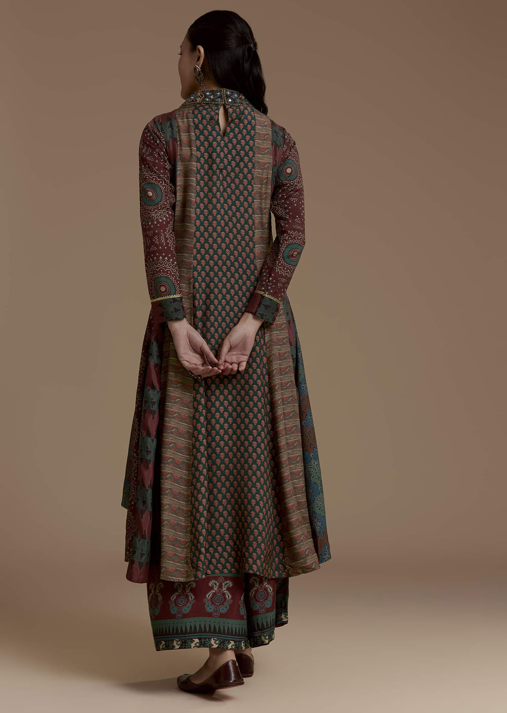 Dark Green Indie Print Muslin Kurta Set with Thread Work