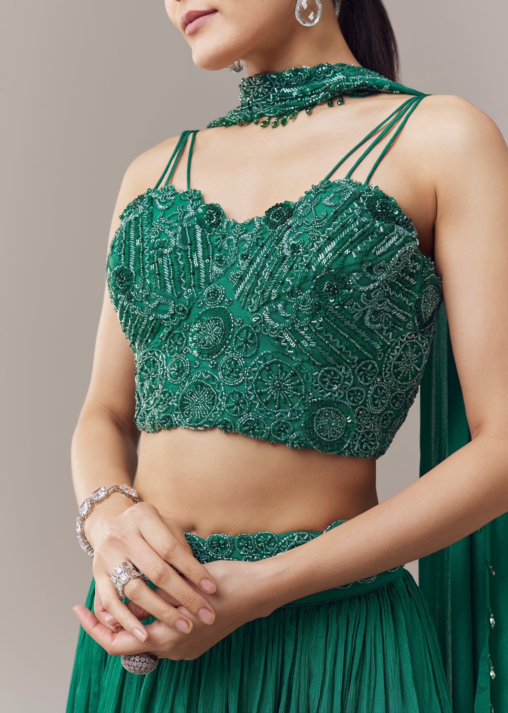 Dark Green Lehenga With Beads Sequins And Cut Dana Work Choli