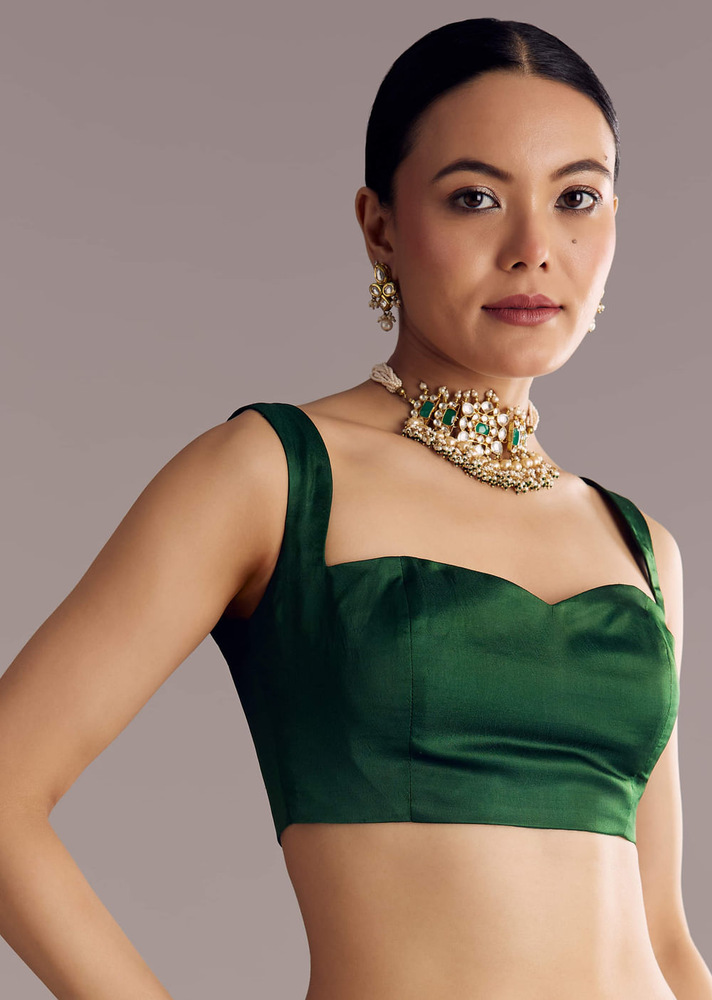 Rooted in tradition, this deep green satin Bandhani saree is a timeless beauty brought to life with intricate gota work shimmering across the fabric. The rich texture of satin blends effortlessly with the artisanal charm of Bandhani, making it an exquisite choice for festive poojas, weddings, or as an elegant ensemble for the bride’s mother. A drape that whispers heritage and shines with celebration. Awarded as the Most Trusted Brand, we're delivering styles you love, just as promised.