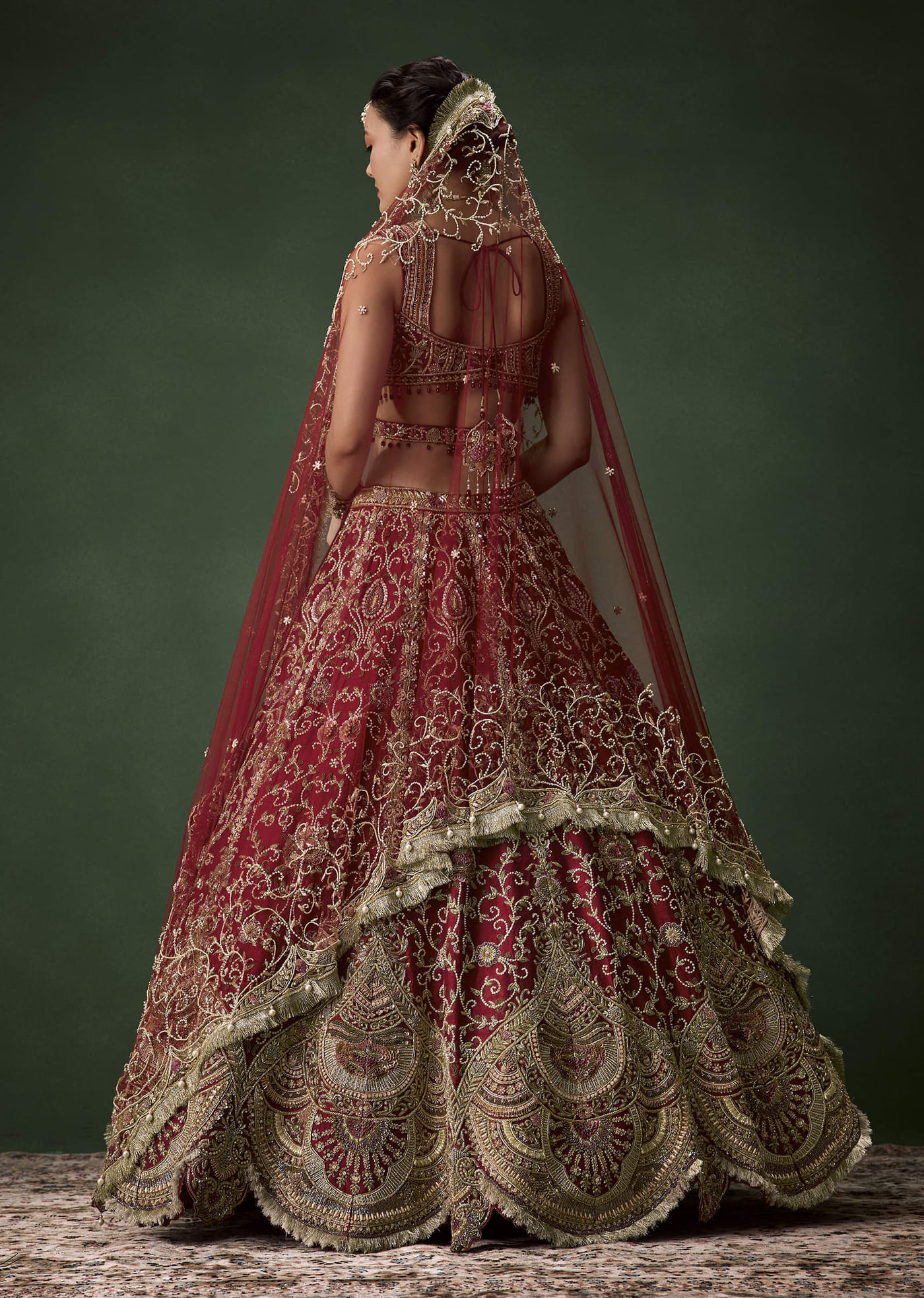 Embroidered Raw Silk Bridal Lehenga Set with Two Dupattas