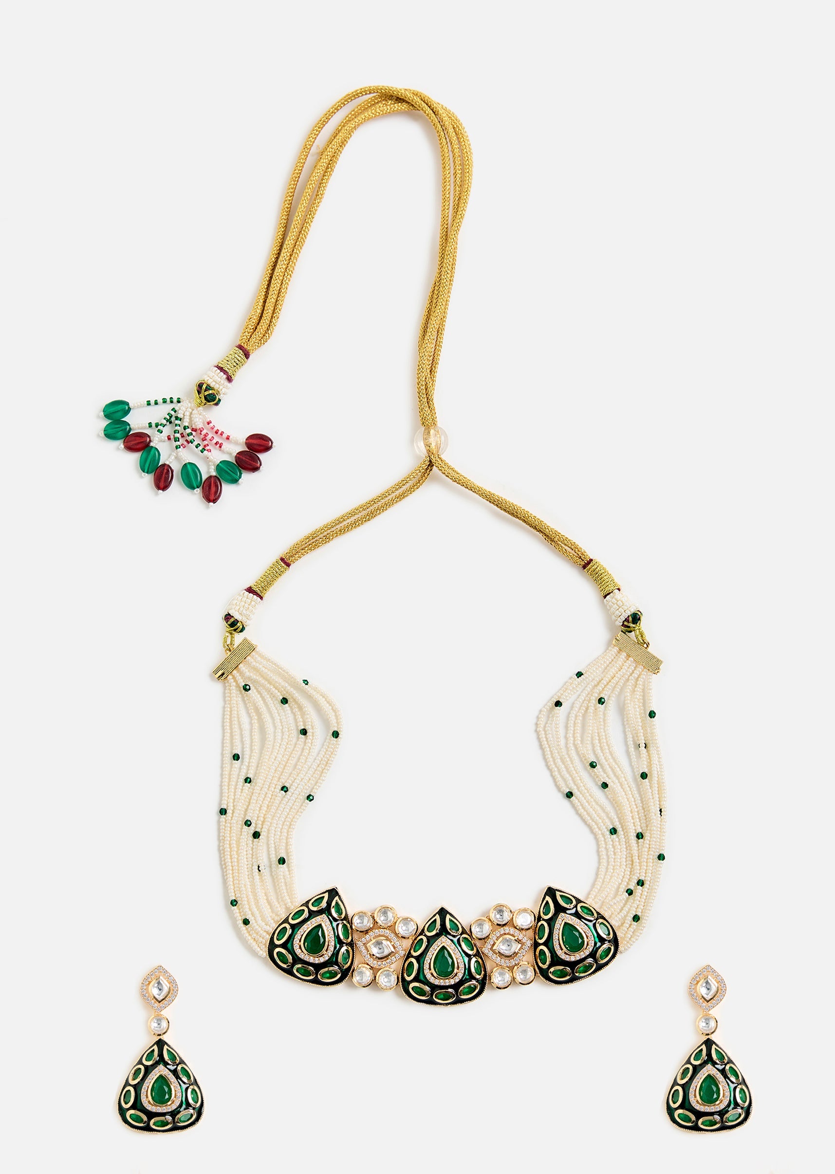 Emerald Stone Choker Set With Earrings