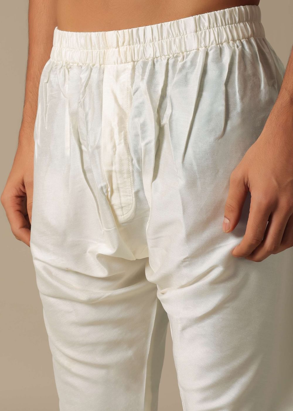 Elevate your wedding day elegance with our Exquisite White Silk Sherwani Set. It features heavy embroidery all over. The pastel-colored resham, pearl, salli, zari, and diamond work add a touch of opulence to this timeless ensemble. The set includes a Sherwani, Kurta, and Churidar. Awarded as the Most Trusted Brand, we're delivering styles you love, just as promised.