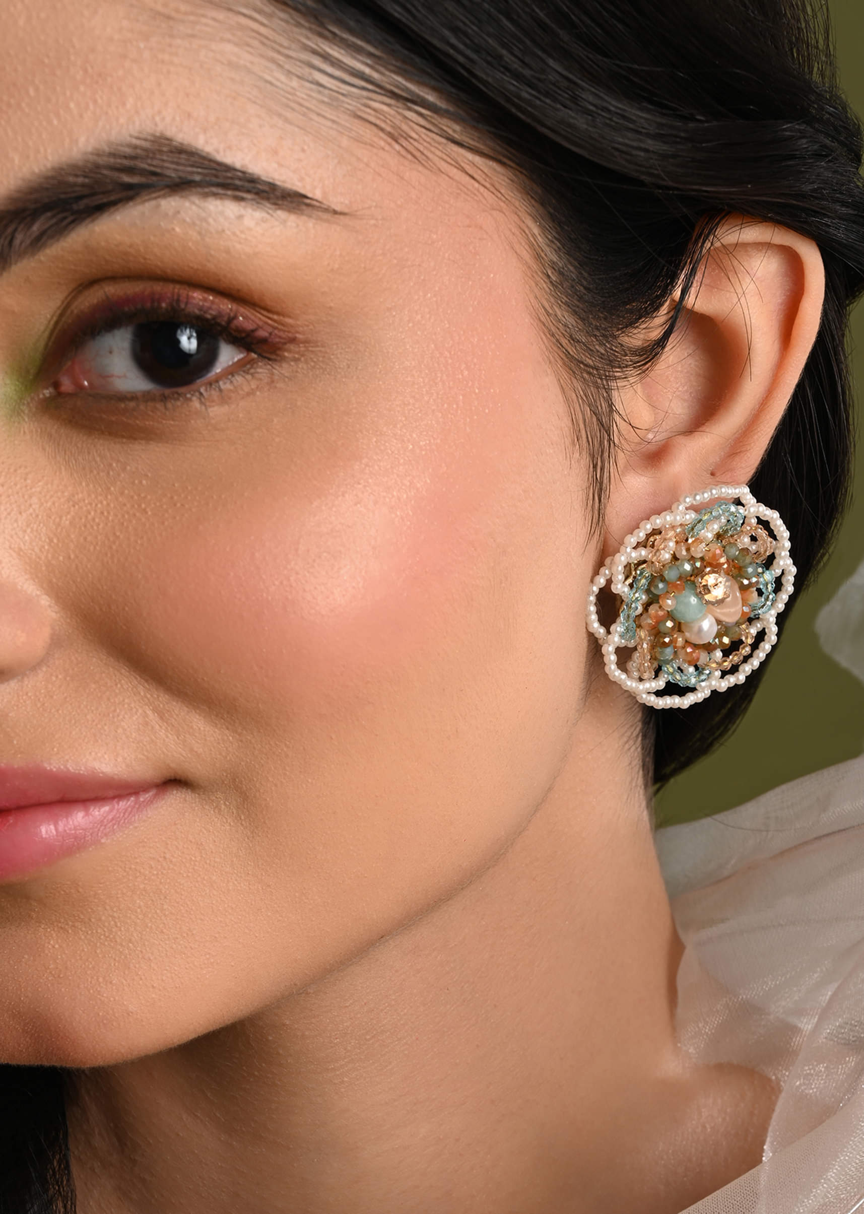 Floral Haldi Mehendi Colourful Stone Crystal Earrings