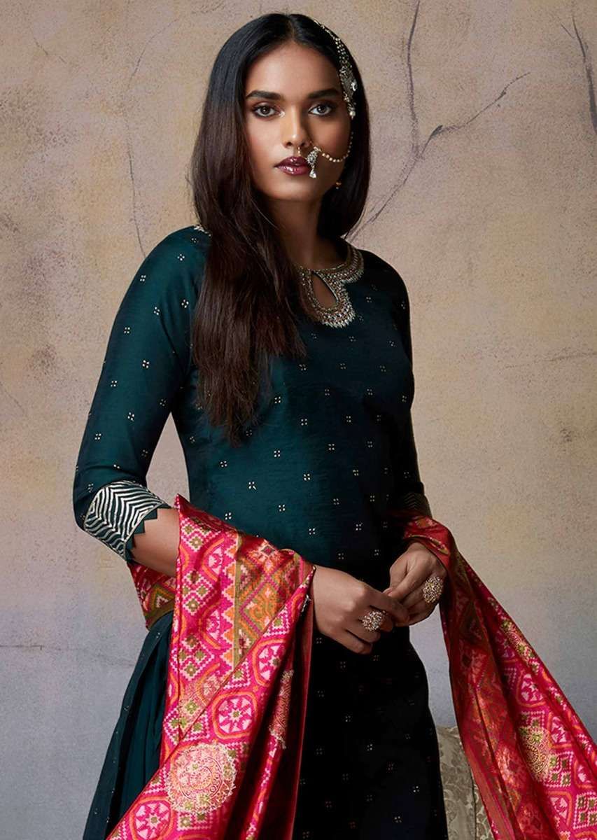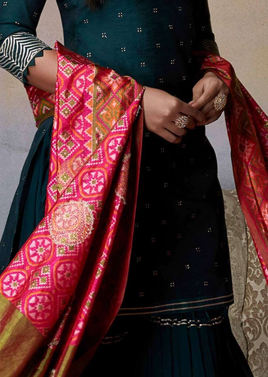 Forest Green Sharara Suit With Badla Work And Magenta Patola Printed Dupatta
