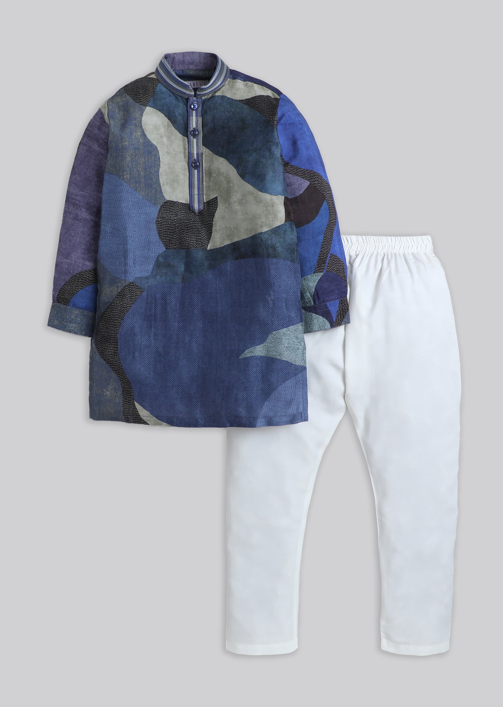 A classic festive cotton kurta set with a bold colour-blocked look, designed with a mandarin collar and front buttons. Paired with matching pants for a complete celebration-ready outfit. Awarded as... More Product Details