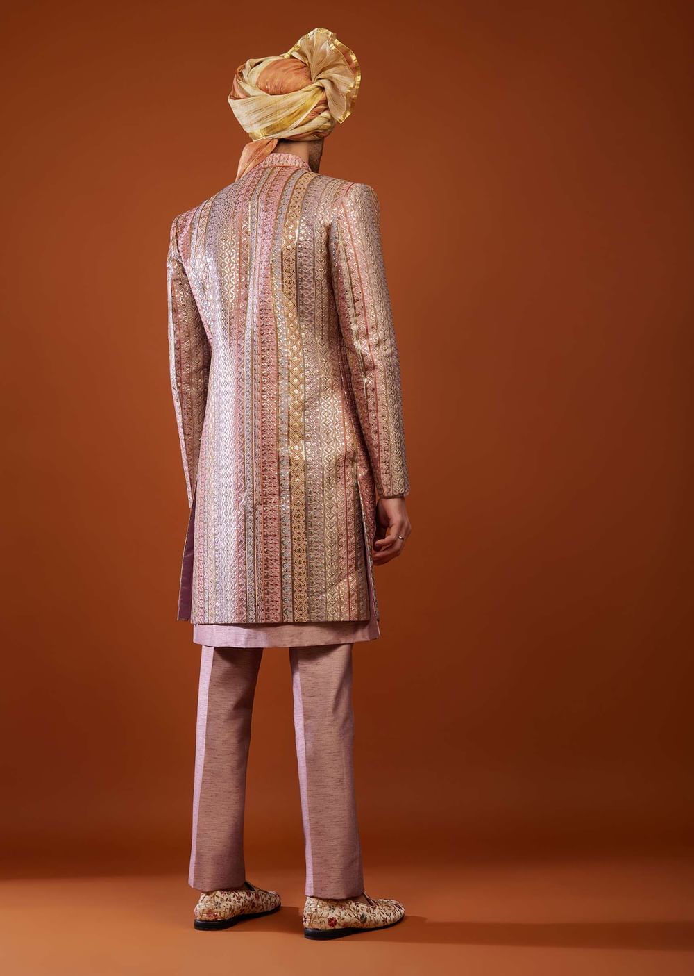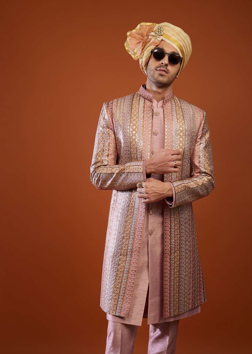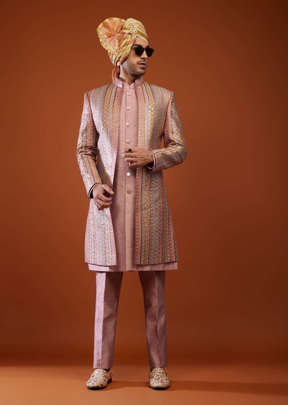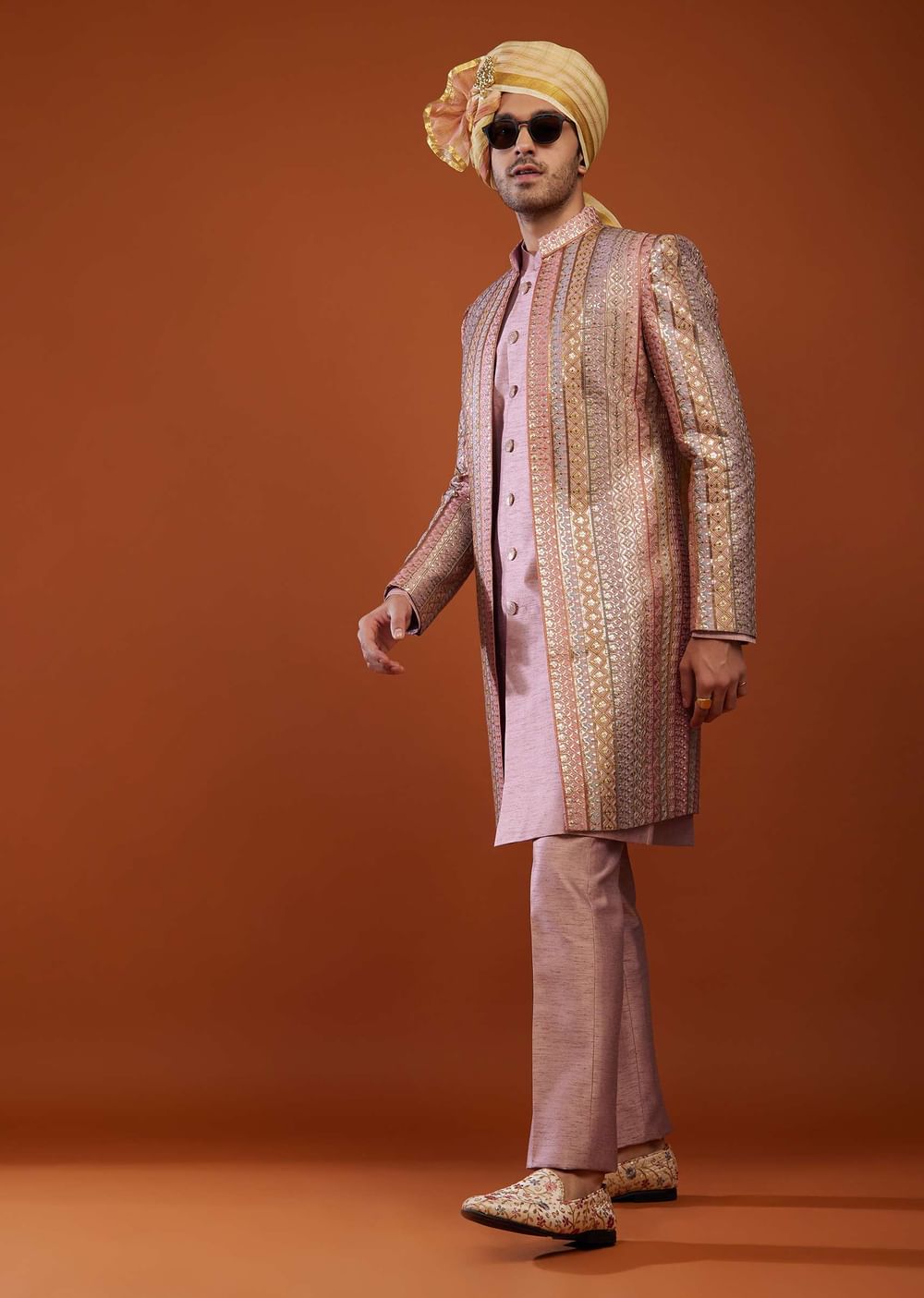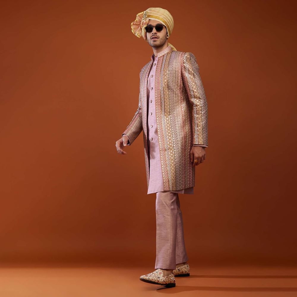 Onion Pink Silk Embroidered Sherwani Set