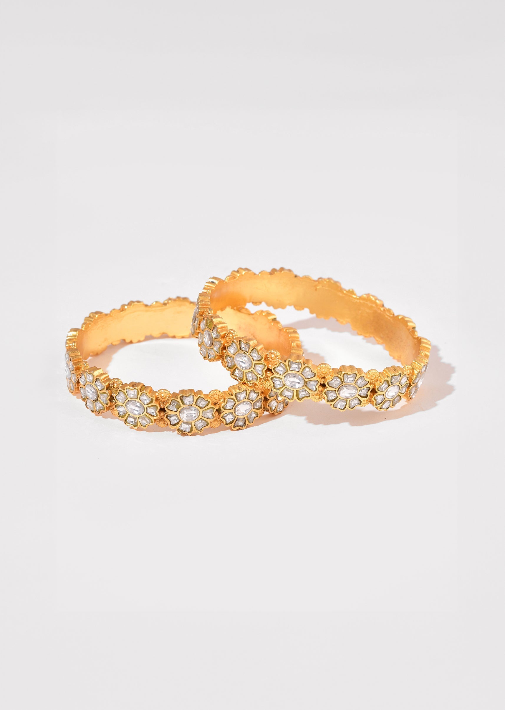 Gold and White Floral Kundan Bangle Set of Two