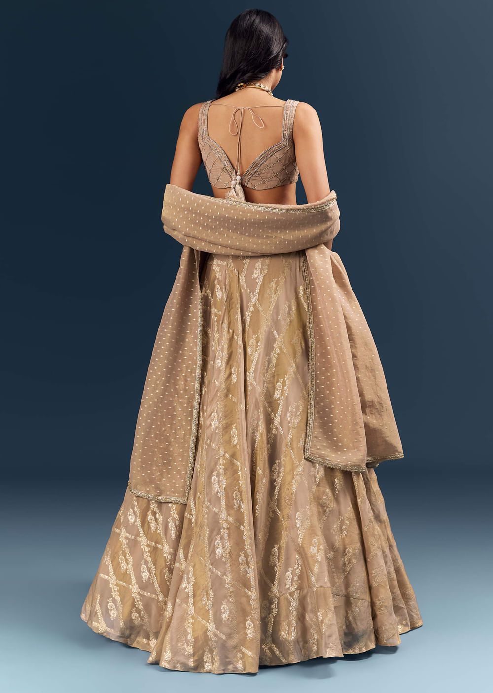 Gold Banarasi Silk Bridesmaid Lehenga With Heavy Hand Embroidery