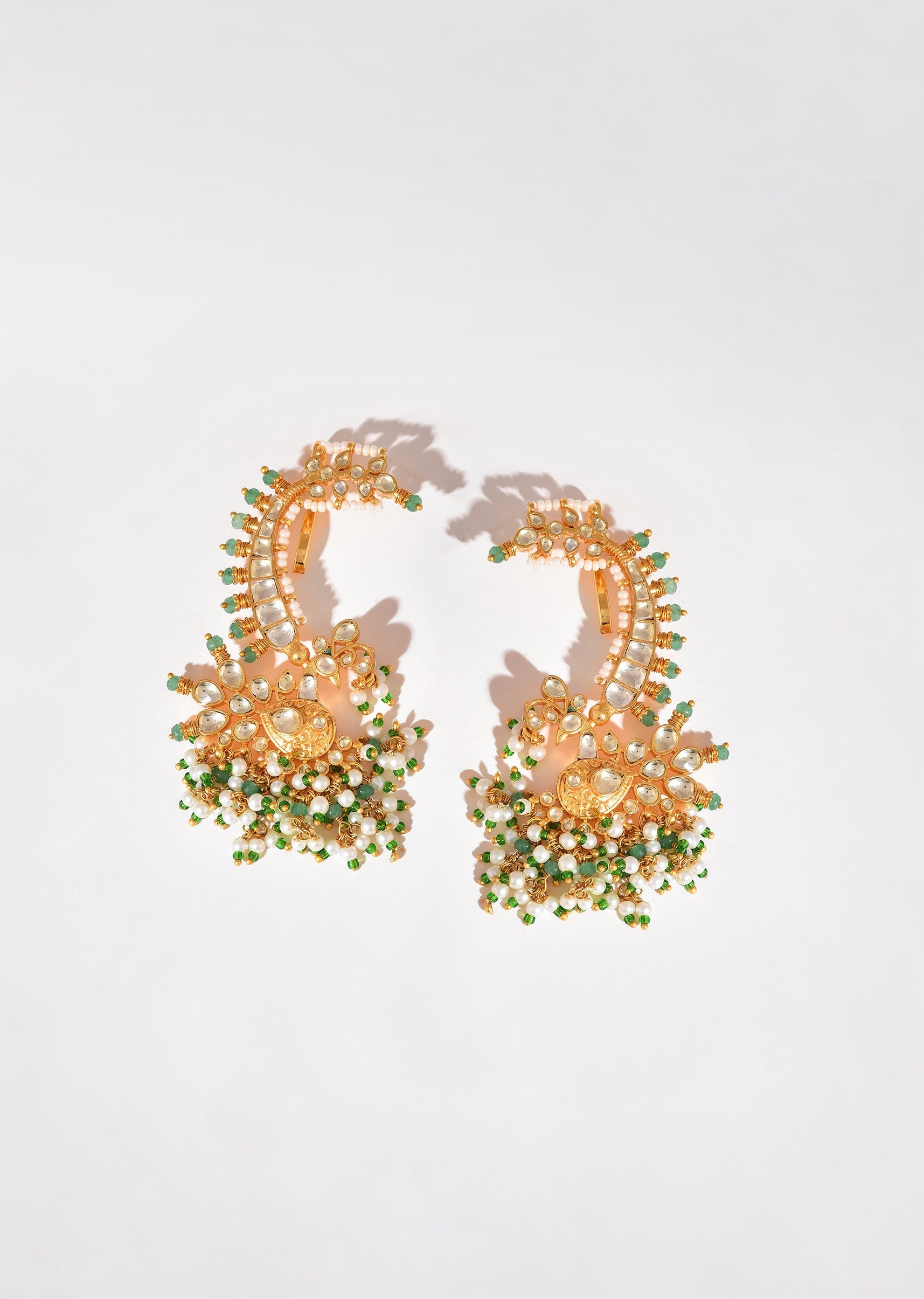 These gold earrings feature intricate pachi kundan detailing for a festive and elegant appeal. Perfect for weddings and special celebrations, they add sophistication and charm to traditional attire. The rich... More Product Details